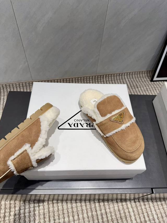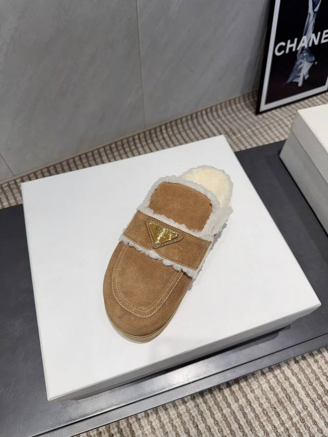 Factory Direct: Exclusive Top-Tier Version DDD Prad*A2025Vs Early Autumn New Popular Wool Slippers Series DDD Horizontal Triangle Buckle Wool Slippers DDD New Arrival This platform series has a super high appearance rate in European and American street photography, and it's also become a hit on Instagram. The last was adjusted for a month to maintain the overall smooth lines consistent with the original version. It's really too charming. I believe that women with taste will love it. The Prad*A series never disappoints. A goddess's weapon DDD Material: Original Custom Cow Necklace DDD Lining: Original Custom Sheepskin DDD Insole: Original Custom Sheepskin DDD Outsole: Original Mold TPU Injection Molded Sole DDD Sole Thickness: 1.0Cm DDD Sizes: 35-39 40.41. Custom orders are non-refundable and non-exchangeable DDD Packaging: Original Full Packaging DDD Color: Updated synchronously with the official website DDD