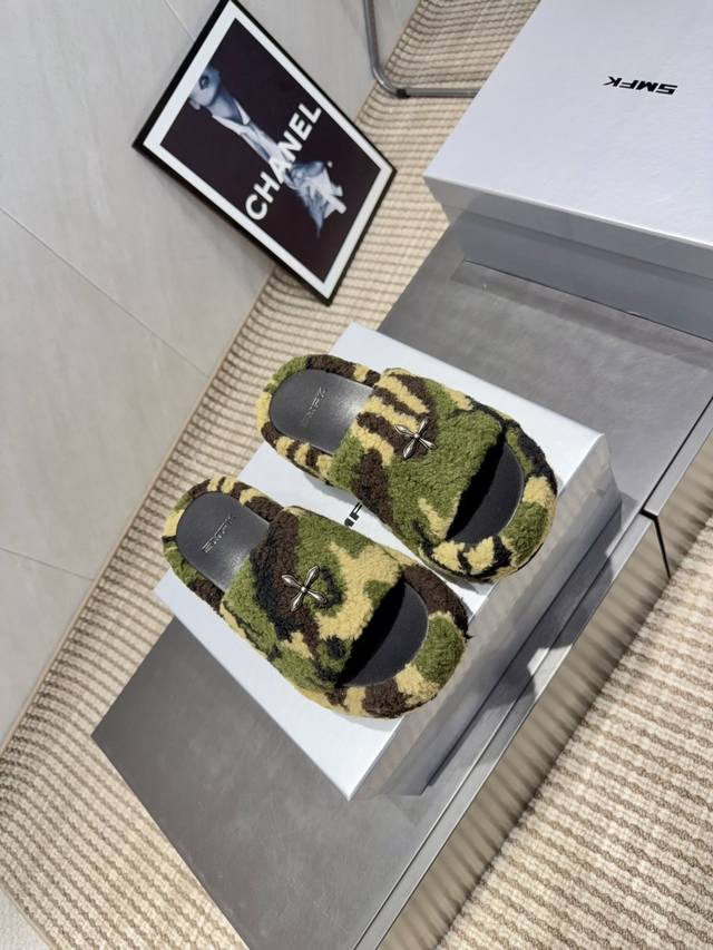 Factory Direct: Exclusive Top-Tier Version DDD Smfk Tide 2025Vs Autumn/Winter Latest Hot-Selling Fleece Slippers Series DDD Cross-Pattern Thick-Soled Fleece Slippers DDD Versatile Minimalist Chinese Chic, the new design inherits many of the brand's winning trendy elements, destined to be a hit DDD Can be worn with skinny jeans or mini skirts, or layered with printed dresses for a stylish look. Details ensure a secure fit and prevent slippage, creating a relaxed and lazy style DDD Fabric: Original Custom-Made Sheepskin Wool DDD Lining: Original Custom-Made Breathable Mesh DDD Insole: Original Custom-Made Cowprint Microfiber DDD Outsole: Original Mold-Made Platform Sheepskin Wool with Platform Cover DDD Heel Height: 7.5cm DDD Sizes: 35-39 40. Custom-made, no returns or exchanges DDD Packaging: Original Full Packaging DDD Color: Updated Simultaneously with Official Website DDD