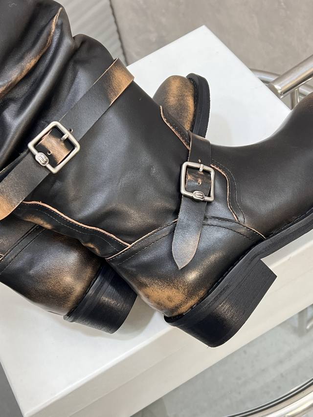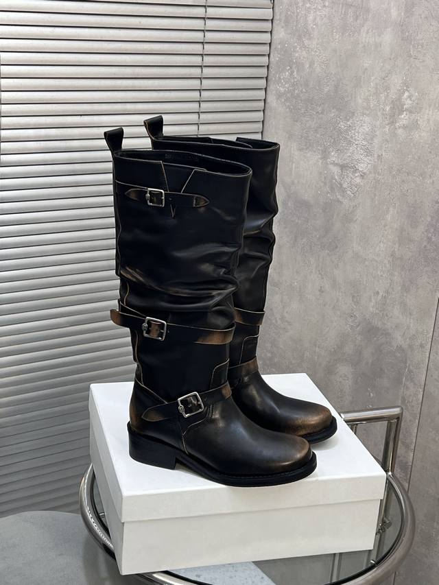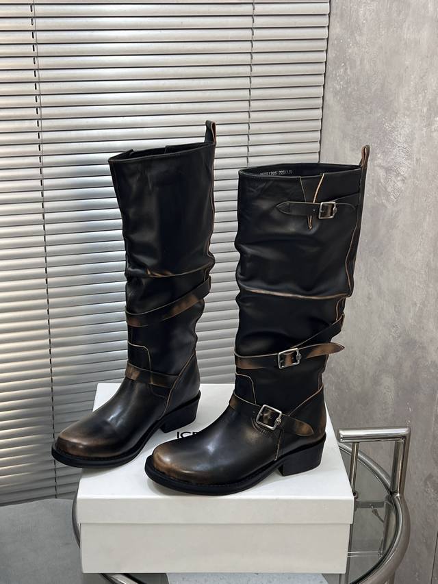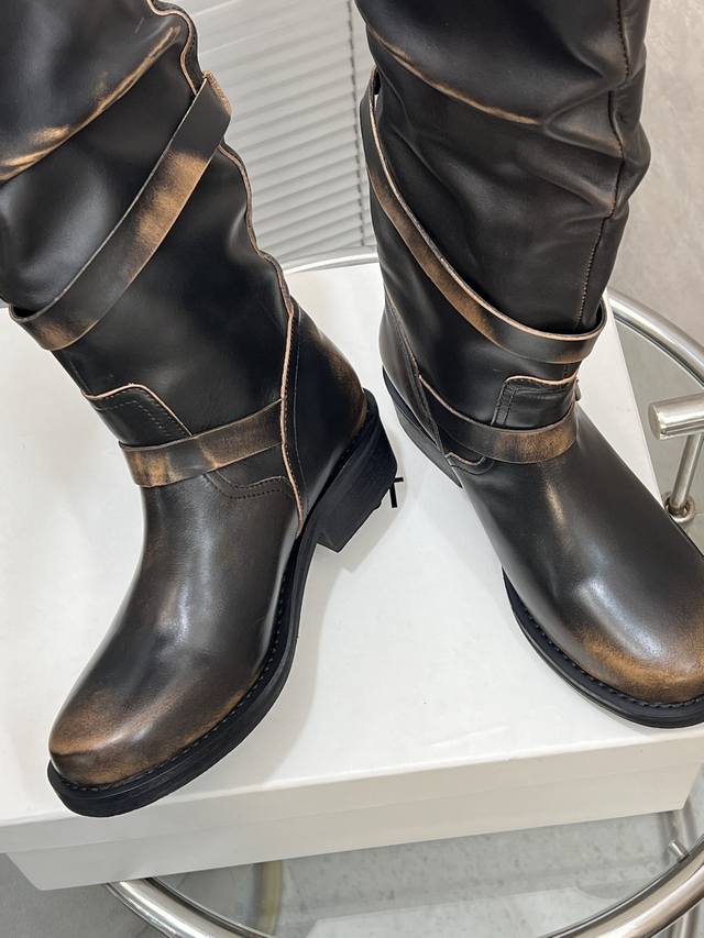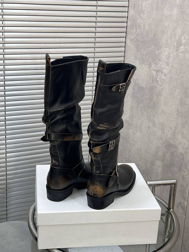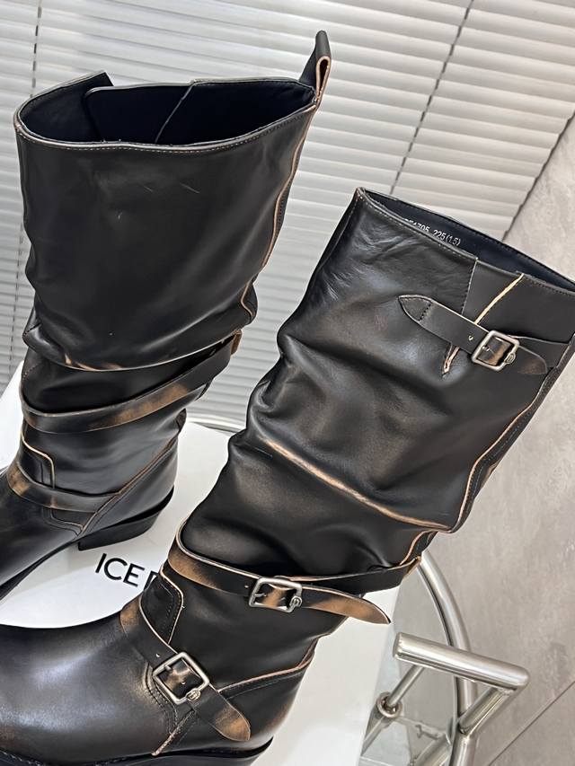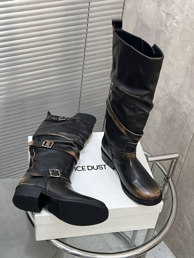 Icedust new pleated distressed retro long boots, riding boots, combat boots!