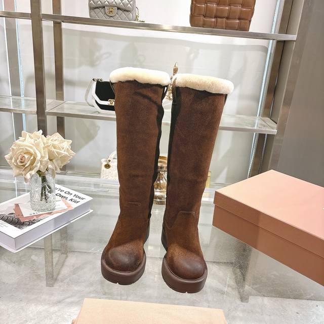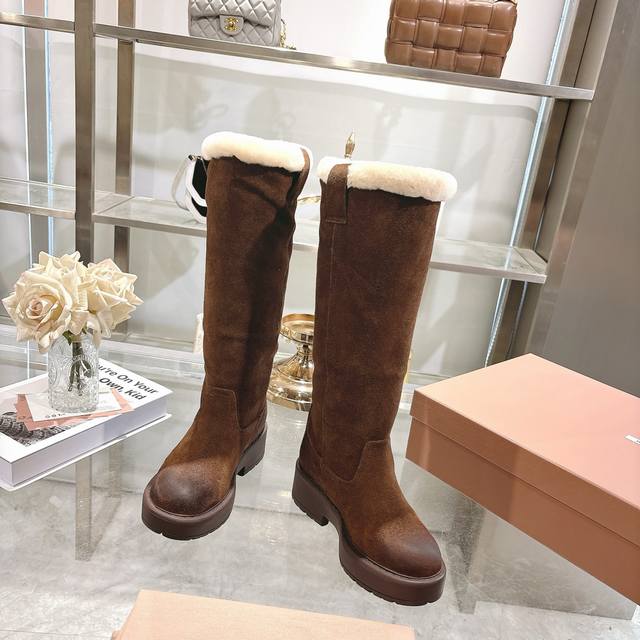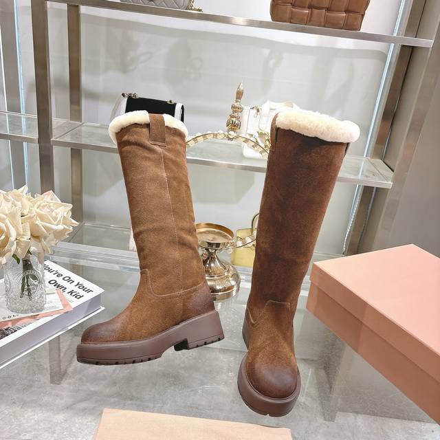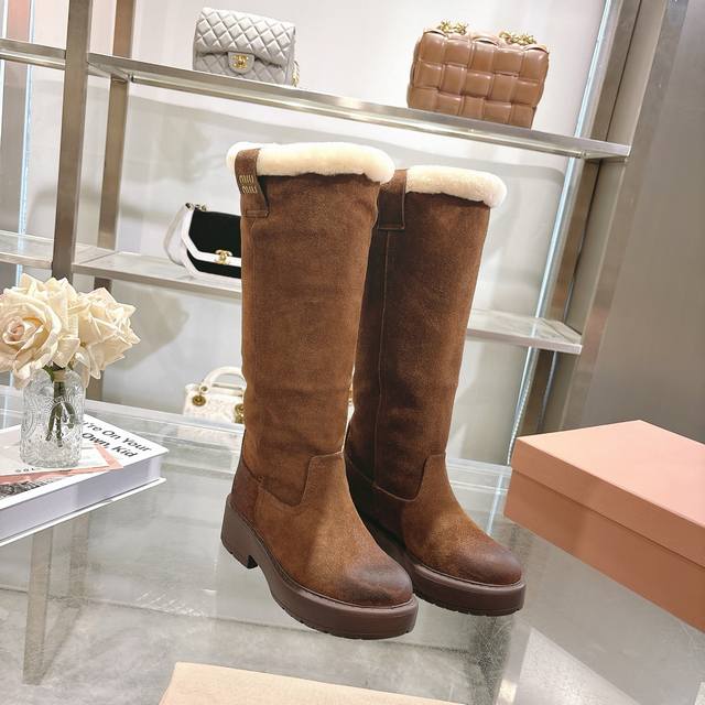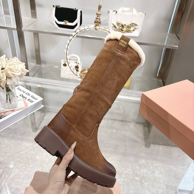 Factory direct leather and fur lining DDD Miu Miu Fall/Winter 2025 runway new long boots. The most worthwhile boots to buy this year, bar none! Adorned by numerous internet celebrities and stars, this Miu Miu Fall/Winter limited edition is extremely difficult to find in stores. It looks stiff, but it's actually incredibly soft and comfortable! Superb feel! The wide boot shaft provides a relaxed fit regardless of leg size and makes legs appear straight! Full of punk style! DDD Material: Italian imported cowhide DDD Lining: Cowhide and fur lining DDD Outsole: Italian one-piece molded outsole DDD Size: 35-41 40.41 Women's custom sizes DDD