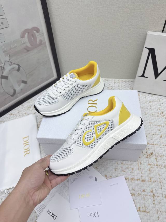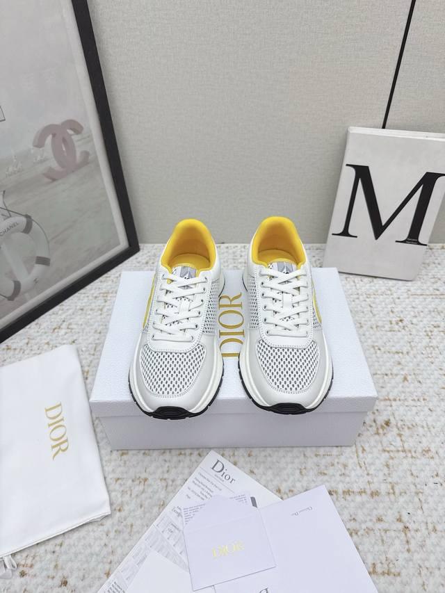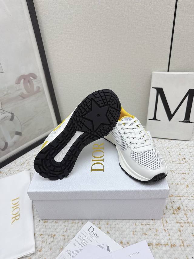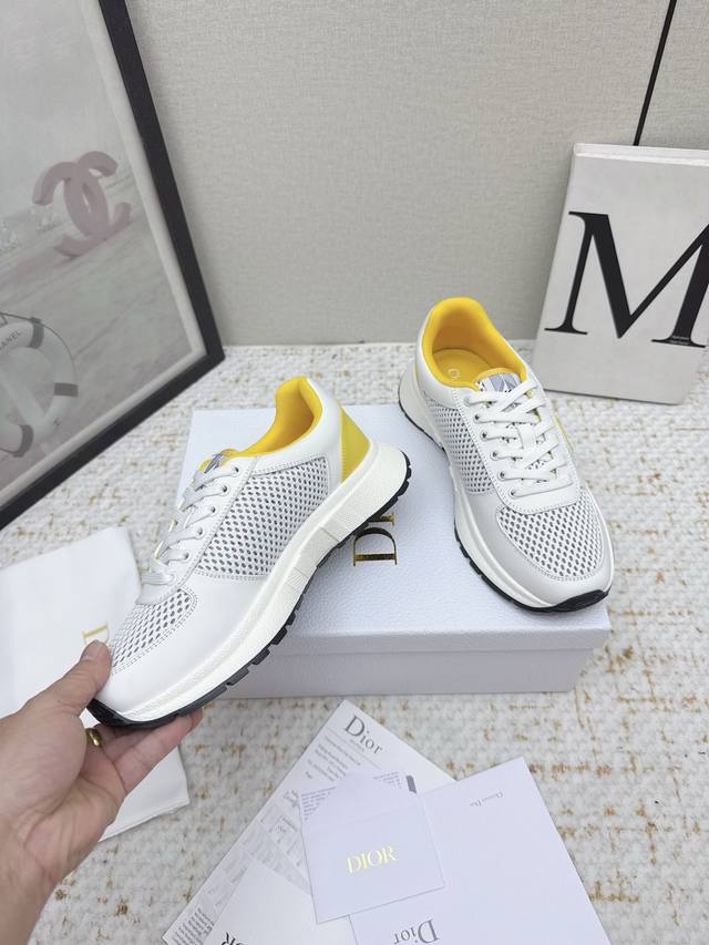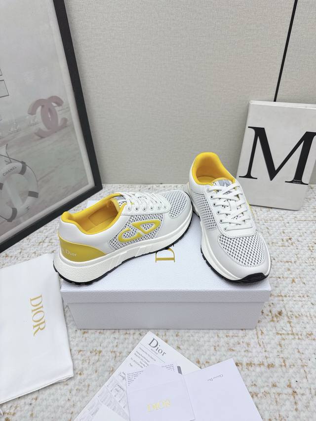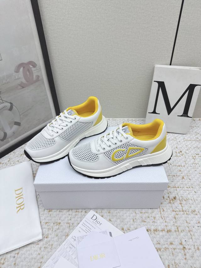 original purchase and development. This Runn sports shoe is a new product from the 2025 Autumn series. It reinterprets the sports style with an elegant and fashionable design. The upper is made of white mesh fabric. The shoelaces and heel are decorated with the
