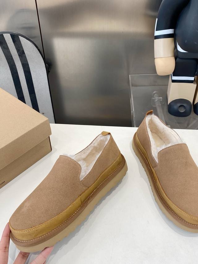 Factory Direct Men's Shoes. Men's Winter Snow Boots, Furry Shoes, Slip-on Casual Shoes. 100% Stylish and Looks Great, Boosts Your Aura! Upper: High-Quality Cow Suede; Lining: Sheepskin/Wool Lining; Outsole: Eva Anti-Slip Outsole; Sizes 39-45.