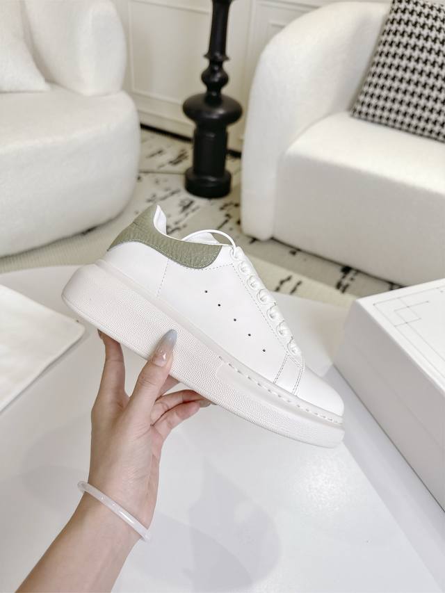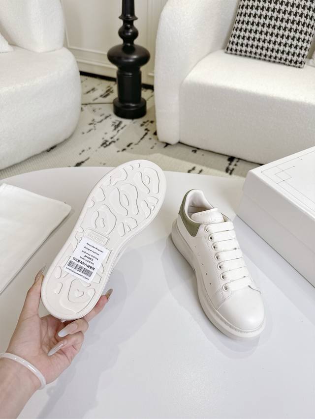 Factory direct men's size +50 silver label style DDD High-quality top-tier Alexander McQueen classic celebrity best-selling versatile white sneakers DDD Upgraded, a brand new generation of lasts. The last has been meticulously crafted over a year, replicating the overall last and toe shape 100% identical to the authentic product. You can verify this by comparing it with the original at a boutique. DDD The first 30-year senior craftsman to make these sneakers based on the original design and Asian foot shapes in a 1:1 scale. During the comfort adjustment period, more than a dozen women with different foot shapes tried them on, and repeated adjustments were made until the last mold was finalized and all foot shapes were comfortable to wear. DDD Sizes: Women's 34-41, 34, 40, 41 (custom made) DDD Sizes: Men's 38-45, 38, 45 (custom made) DDD Almost all colors are available, and popular colors are in stock. Other colors are constantly being updated. DDD Material: Custom original silk, top-grade first-layer cowhide material with roller coating process DDD Lining: Made with imported cowhide or mixed sheepskin. Footpads: Injected from imported high-elasticity PU foam and cowhide using the same mold as the original, not glued on. Outsole: Exclusively molded for the original, with anti-yellowing technology. Please note that the new version's outsole has different length, girth, and even the head shape compared to the old version.