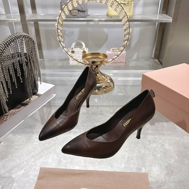 Factory direct Miu 26 Spring New Pointed Toe High-Heeled Low-Cut Shoes! Miu 26 h