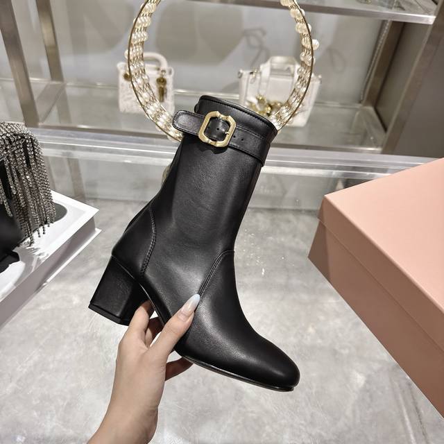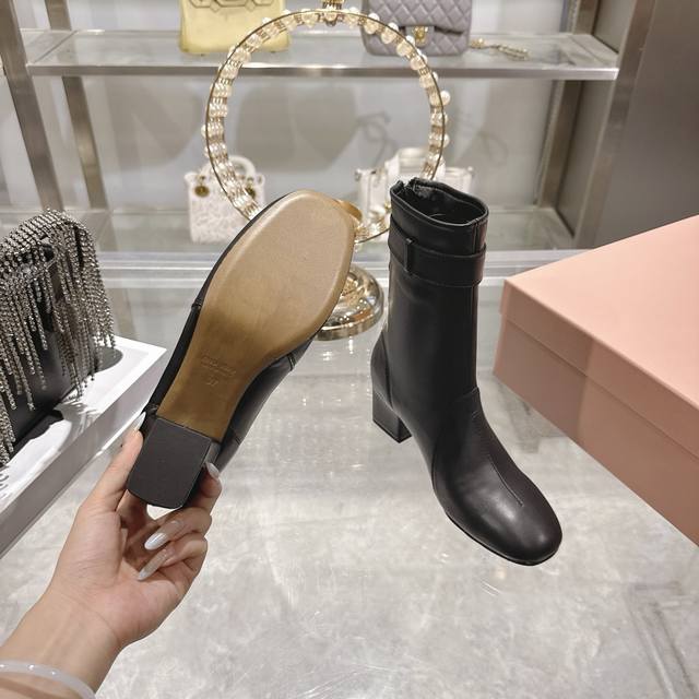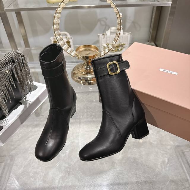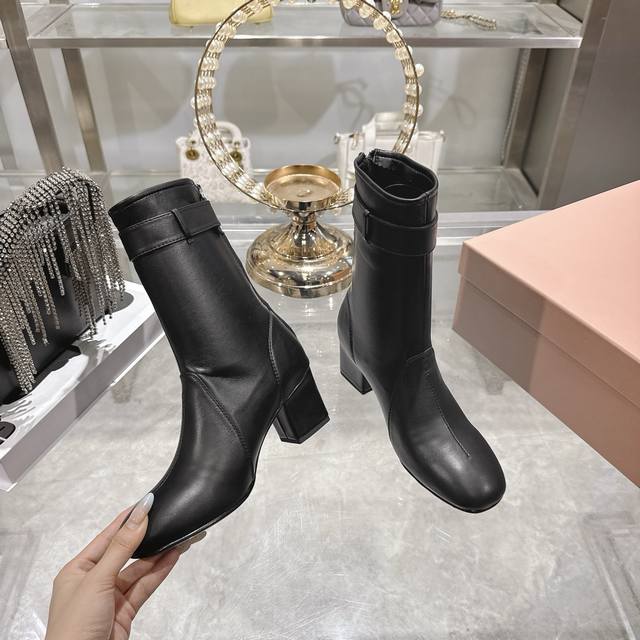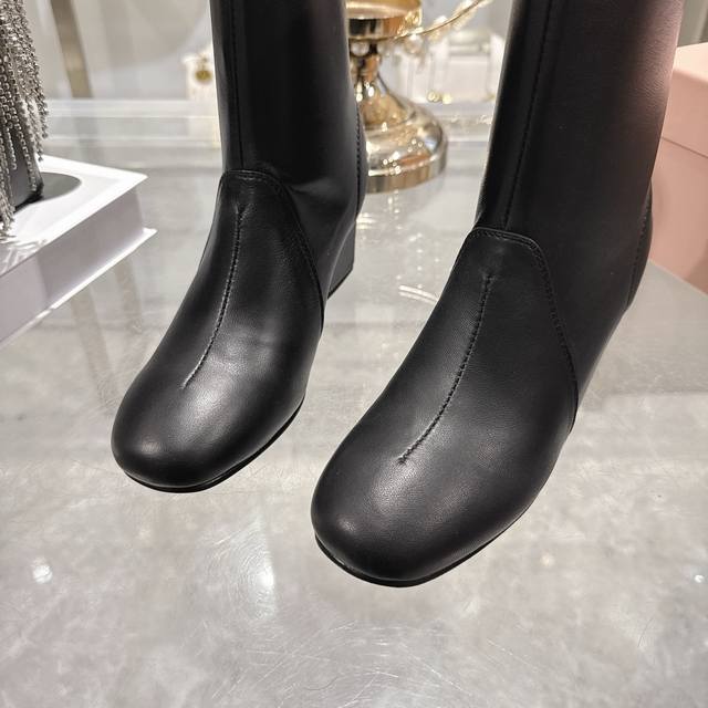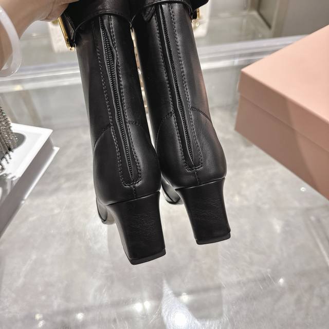 Factory direct Miu Miu 25Ss stretch ankle boots, new autumn/winter runway style! This year's must-have boots, bar none! So many influencers and celebrities have been seen wearing Miu Miu boots this autumn/winter, they're undeniably cool and sexy! This autumn/winter limited edition is extremely hard to find in stores. They look stiff, but they're actually incredibly soft and comfortable! Amazing feel! The wide boot shaft provides a relaxed fit regardless of leg size and makes legs appear straighter! Full of punk style! Material: Calfskin, special material; Lining: Cowhide; Outsole: Italian genuine leather. Size: #35-40. Sizes 40 and 41 are custom-made and non-refundable.