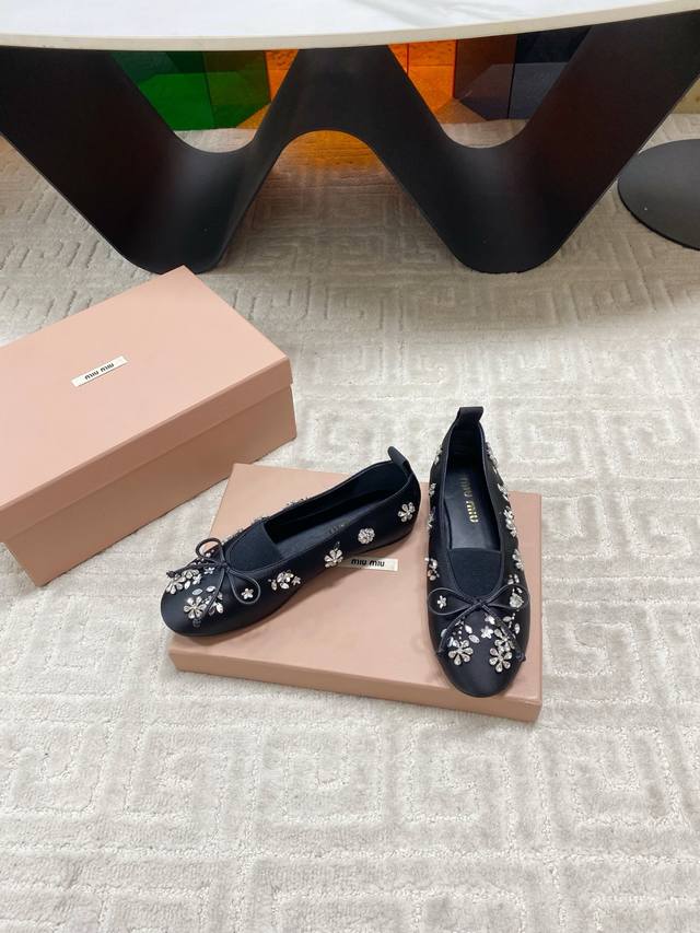 Factory direct Miu Miu Mary Jane flats, women's, bow-decorated satin ballet flats, exclusive high-quality Miu Miu new flat ballet flats, original design, far superior to other versions on the market. Miu is so girly! Super soft and comfortable, grab them if you like! Upper: Imported silk Sizes: 35-39, 40, 41 (Custom orders, no returns or exchanges) Sole: Original genuine leather sole