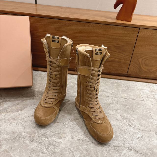 Factory direct Miumiu 2025 winter boots, new style, wool boots, Martin boots, mid-calf boots, retro, classic, simple, stylish, and versatile~ Excellent shoe shape, incredibly comfortable! Lightweight and not bulky! ~Full wool lining, super stylish and warm, a winter essential DDD Outer material: Suede cowhide DDD Lining: Wool DDD Outsole: Mold outsole DDD Sizes: 35-39 40 Made to order, no returns or exchanges DDD