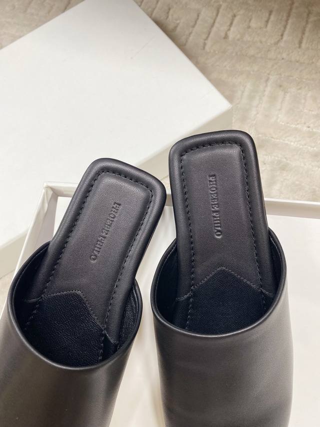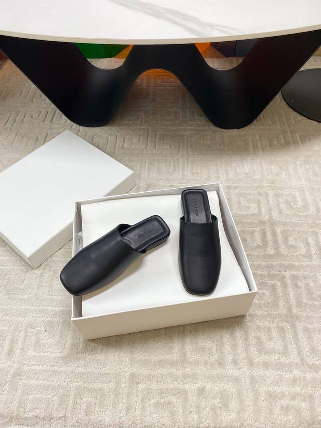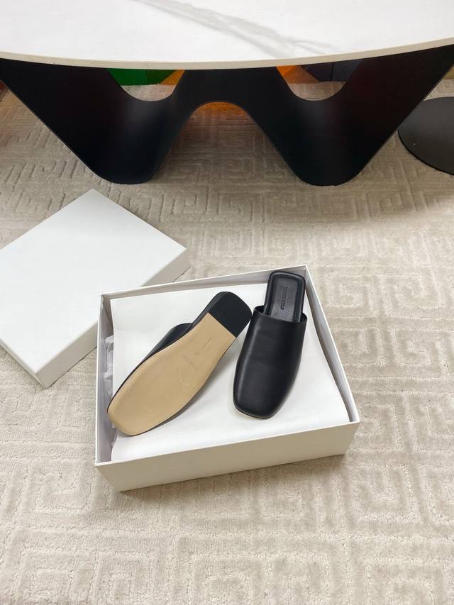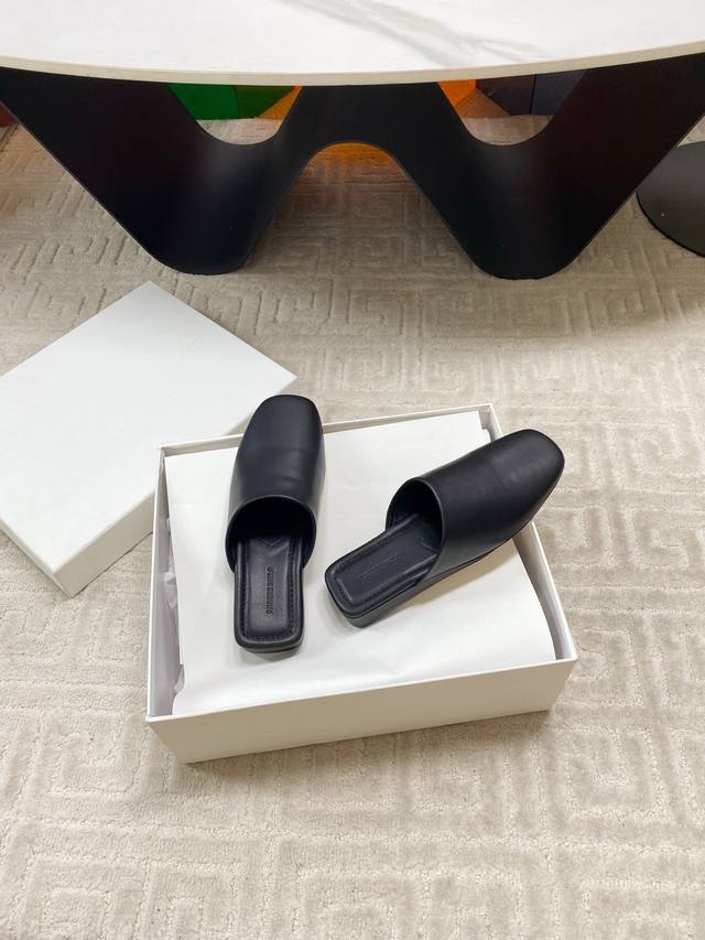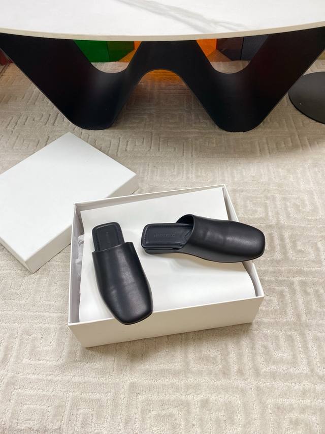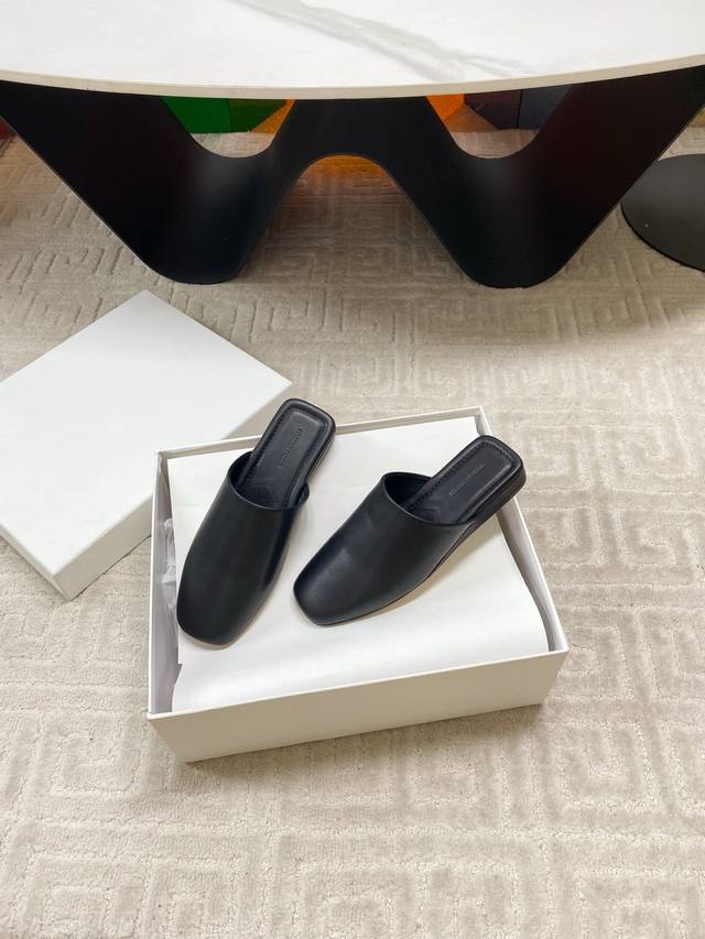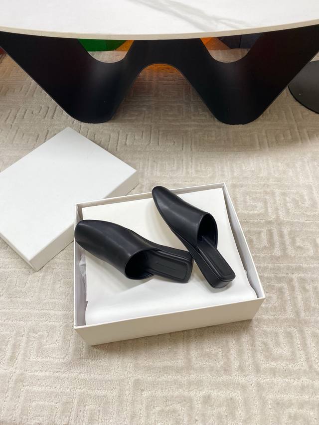 Factory direct Phoebe Philo low-heeled mule/slip-on shoes. These backless mule slippers feature a rounded square toe and simple, flowing lines, offering a relaxed and casual flat mule look. They fit the foot well and allow for free movement. The upper is made of fine leather, soft to the touch, with a matte, high-end feel. Available in black for a sophisticated look and off-white for a fresh feel. The leather is breathable and durable. The minimalist solid color design is versatile and suits various styles. The stitching details at the opening add a touch of sophistication, and the flat sole ensures everyday comfort. Upper: Cowhide Lining: Sheepskin Outsole: Genuine Leather Heel Height: 2cm Size: 35-39 (Size 40 is custom-made and non-refundable/exchangeable)