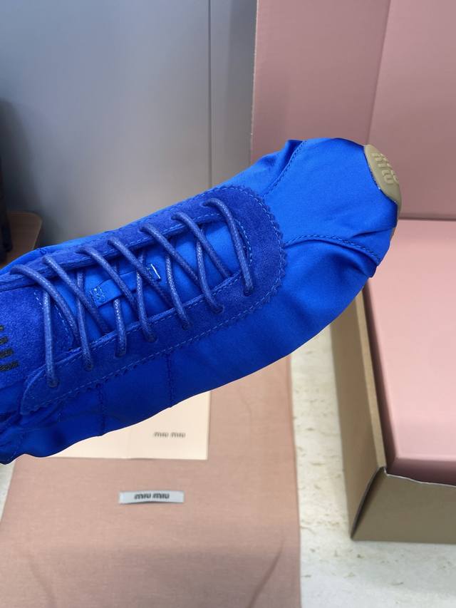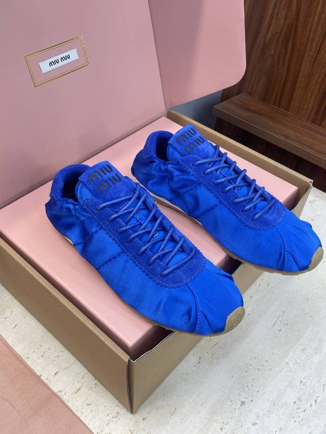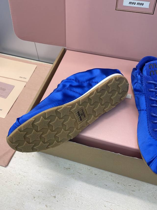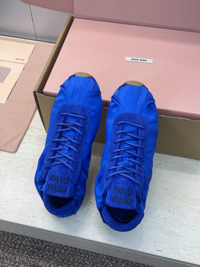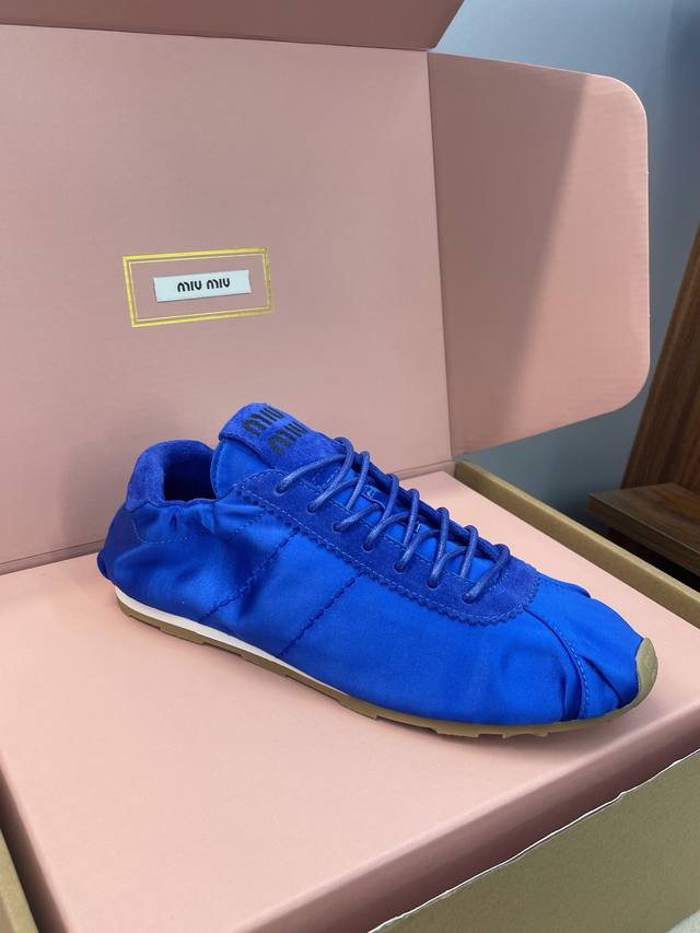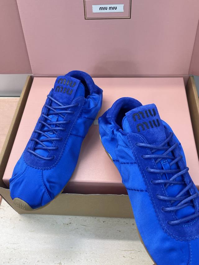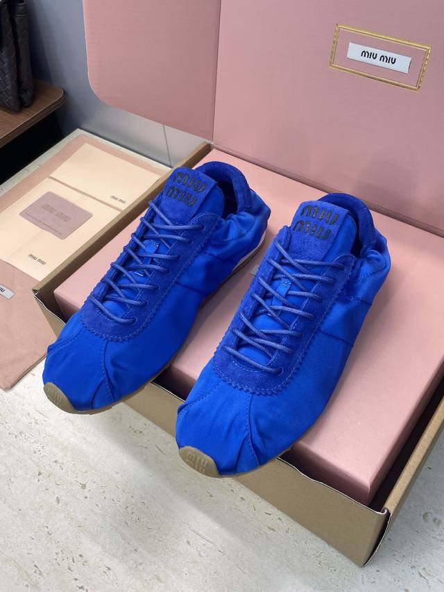 Factory direct price, comes with a full set of airplane box. Miu Miu 2026 Early Spring Haute Couture Collection Runway New Lace-up Casual Sports Shoes, Miu Miu Celebrity Same Style Letter Logo Round Toe Color Block Forrest Gump Running Shoes. Material: Imported suede upper, imported environmentally friendly breathable silk fabric + water-dyed sheepskin lining + original molded outsole. Size: 35-41. 40.41 is custom-made and non-refundable.