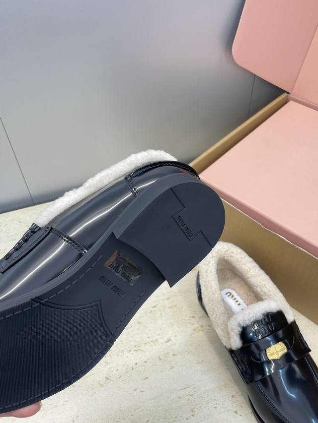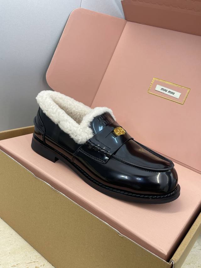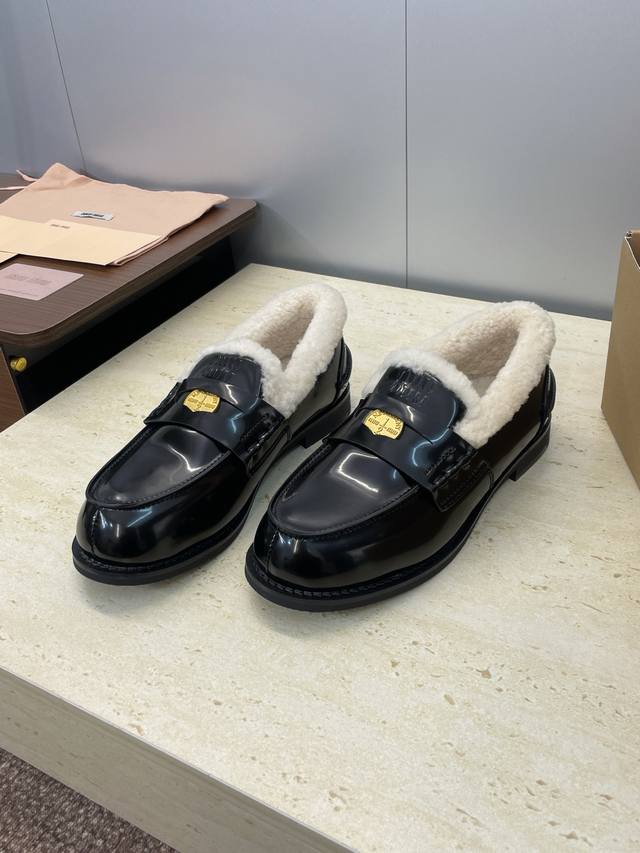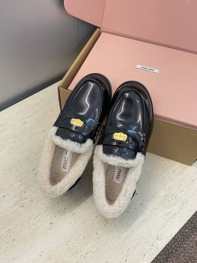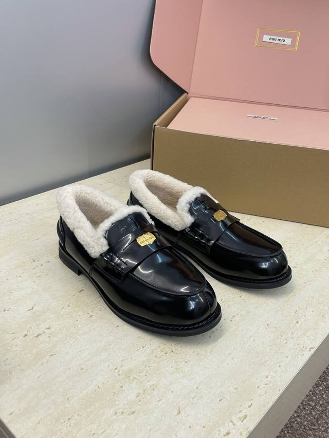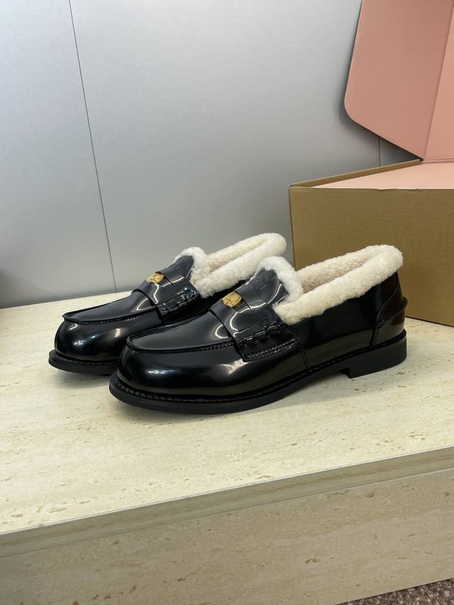 Factory direct price, comes with a full set of airplane box. Miumiu 2025 Autumn/Winter New Fashionable Lambswool Women's Single Shoes, Miu Miu Letter Logo Hardware Buckle Low Heel Round Toe Color Block Loafers. Material: Upper: Imported suede, imported waxed calfskin, imported split-edge cowhide + imported lambswool lining + original molded anti-slip and wear-resistant rubber outsole. Size: 35-41, 40.41 (custom orders are non-refundable ).