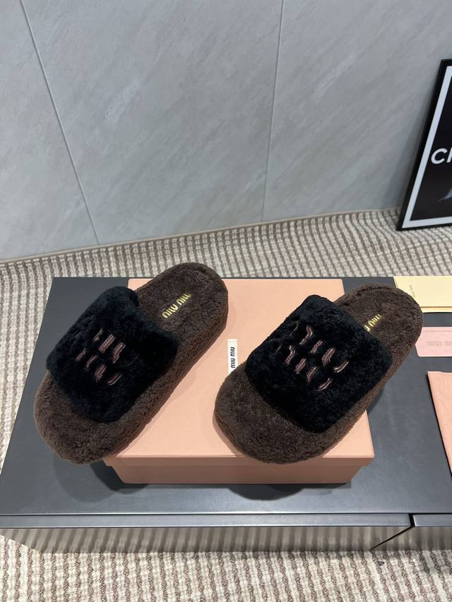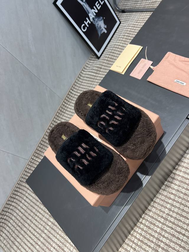 Factory direct price exclusive top-tier version DDD Miu Miu 2025 VS new wool slippers series DDD A versatile and stylish item! Whether worn at home or outside, it's a symbol of taste! It's absolutely stunning when paired with socks in autumn and winter DDD Fabric: Custom original wool DDD Lining: Custom original wool DDD Insole: Custom original wool DDD Outsole: Original molded rubber outsole DDD Packaging: Original full packaging DDD Sizes: 35-39 40 41 42 43 Custom DDD Colors: Updated simultaneously with the official website DDD