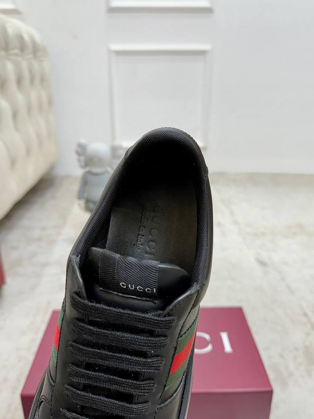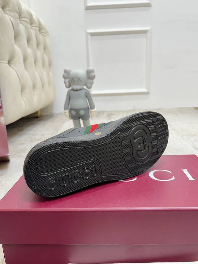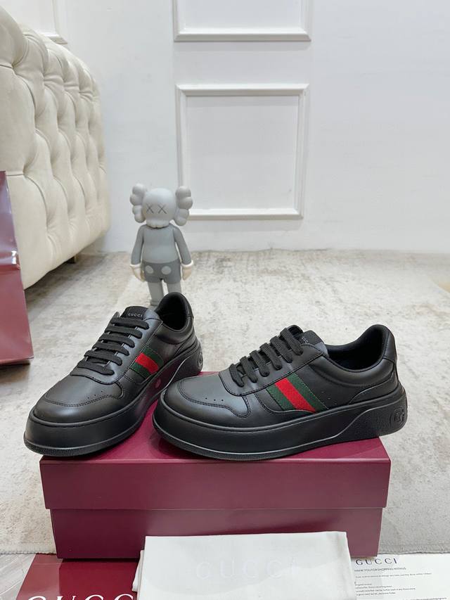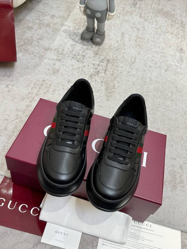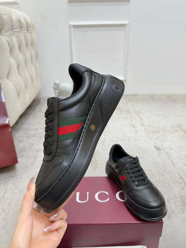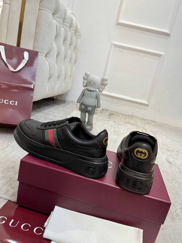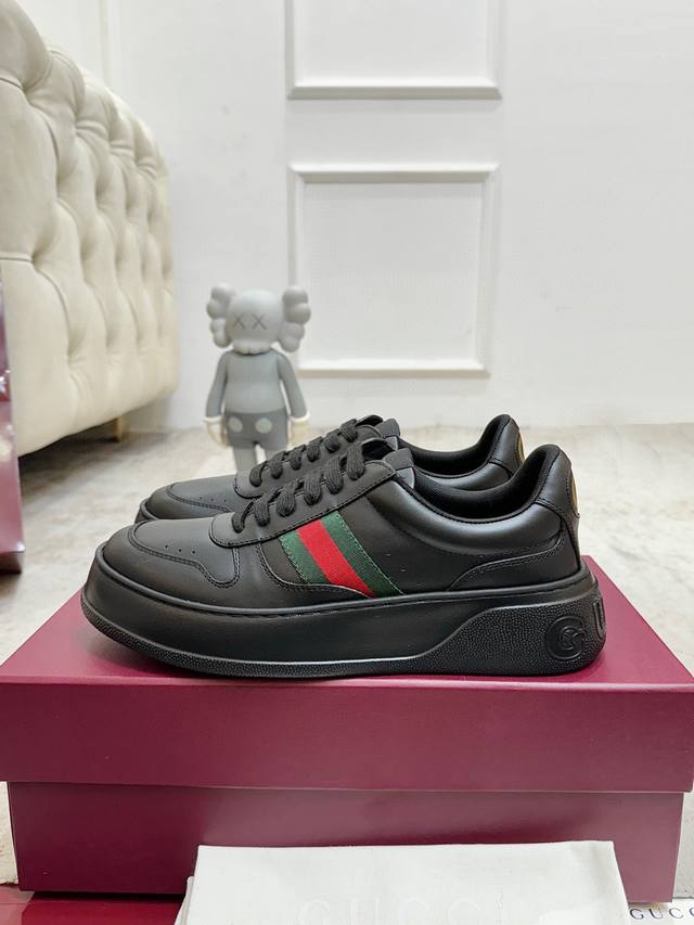 Factory direct price. G brand's latest hot-selling platform white sneakers. A mix of sporty and casual design, combining trendy concepts with a retro vibe. The new series continues to draw inspiration from everyday life in other eras, incorporating contemporary design essence. Made of GG printed embossed leather, adorned with the classic double G logo pattern, showcasing the brand's deep identity. Material: Original silk cowhide. Lining: Cow lining and insole. Insole: Original double G insole. Outsole: Ip foam. Tongue size: Air-pressed original size. Packaging: Full set with tote bag. Note: All details are original. Sizes: Women's 35-40, Men's 39-45.