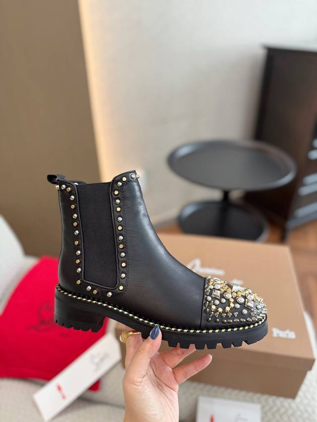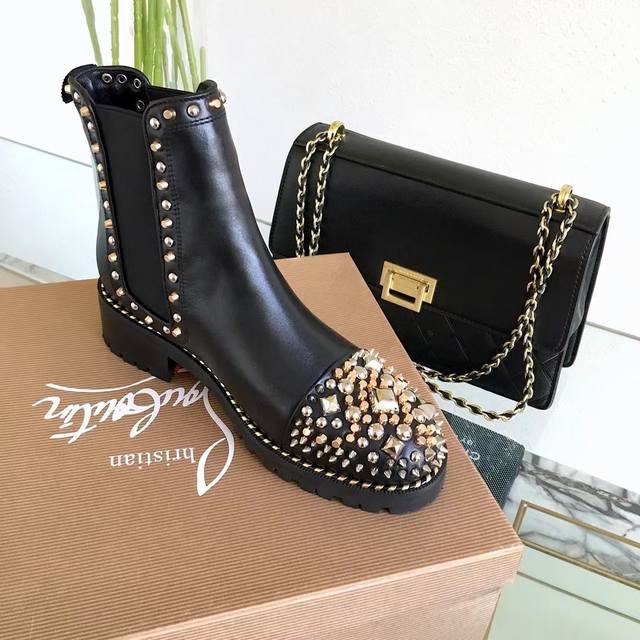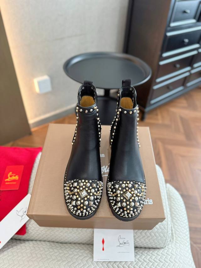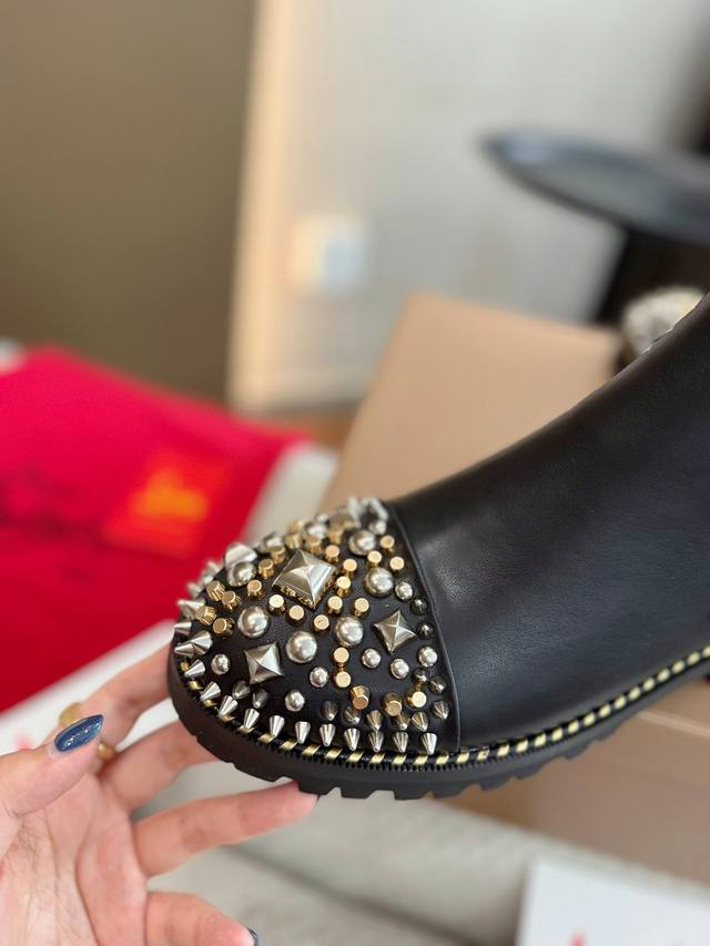 Factory direct price, guaranteed to sell. Christian Louboutin Fall/Winter original design, high-quality boutique new product, original packaging, full and stylish boot shape, rivet design on the toe, top-quality double-layer black and red color scheme outsole, color, gloss, and texture completely comparable to the authentic product. All these craftsmanship features, plus celebrity street style photos, making it a hot seller and the reason why our factory strongly recommends it! Material: Imported calfskin upper with electroplated hardware rivets! Full leather lining! Top-quality craftsmanship, not something ordinary factories can achieve, combined two-tone rubber outsole, comes with original boutique packaging. Sizes: 35-40, 41, custom sizes available.