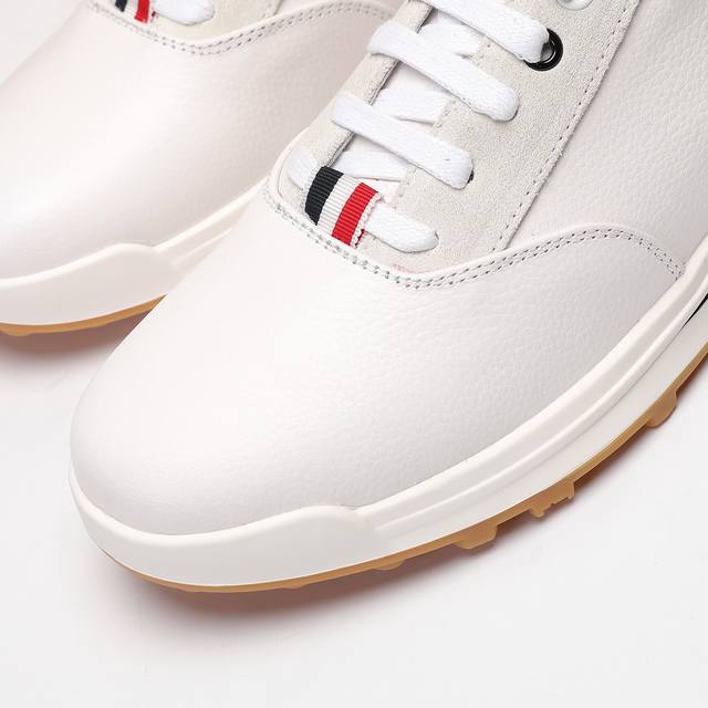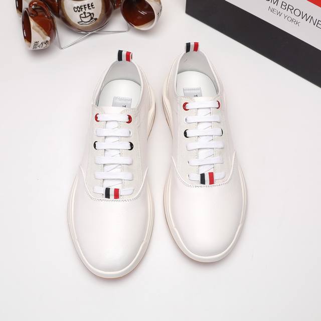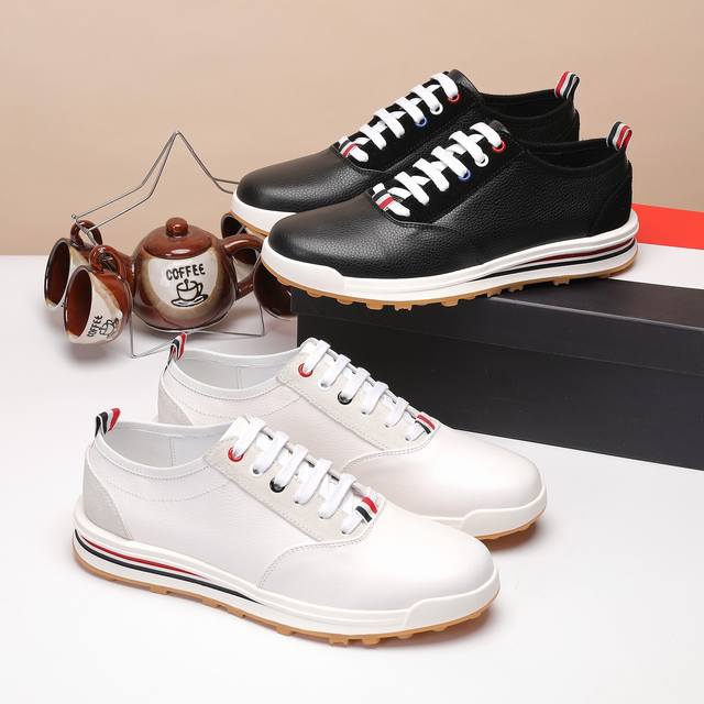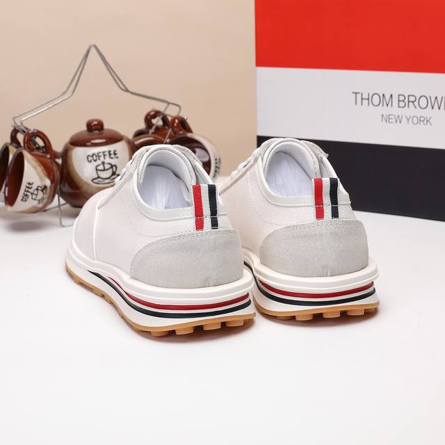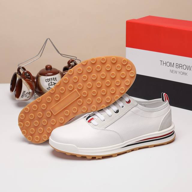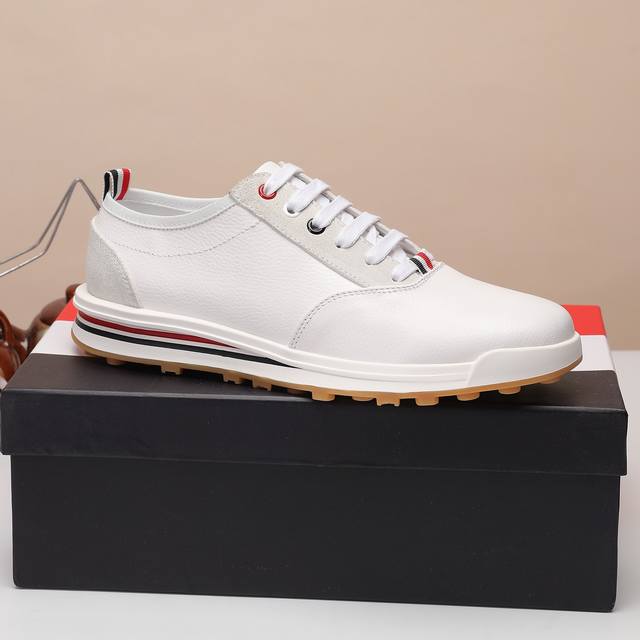 Factory direct price, high-end original 1:1 sheepskin lining, Thom Browne New York, another hot item! This edgy and cool new brand gives us a relaxed, stylish, and individualistic new choice this summer. The upper is made of original imported cowhide, the lining is sheepskin, and the sole is made of original material. The red, white, and blue stripes highlight the brand's elements. Sizes: 38-44 DDD