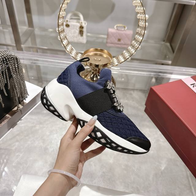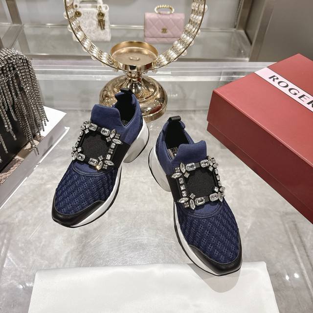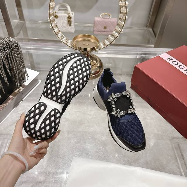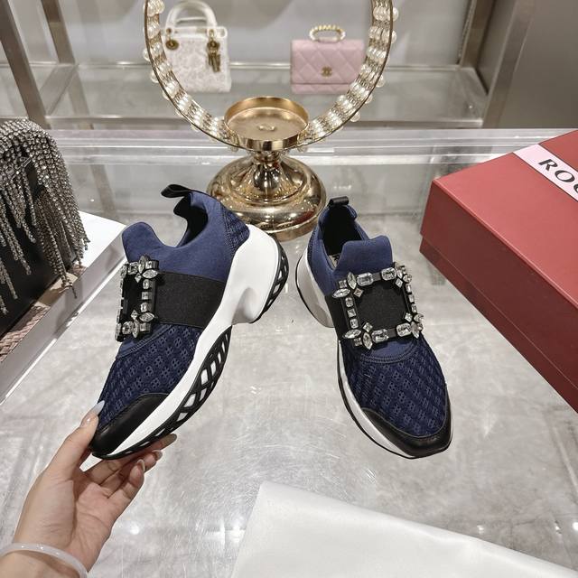 Factory direct replica of Roger Vivier Fall/Winter 2025 classic rhinestone buckle casual shoes. Original replica, top-quality version. Worn by many celebrities, including Ouyang Nana. Perfect for pairing with skirts or trousers, casual yet elegant! A must-buy this fall/winter! A stylish and sporty look