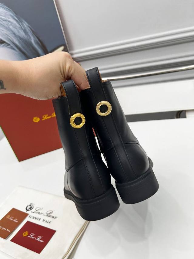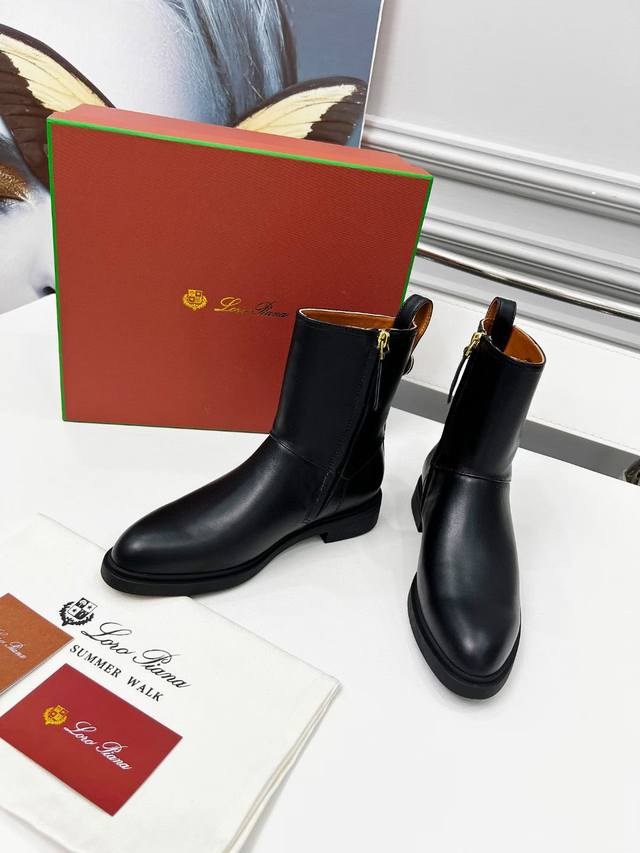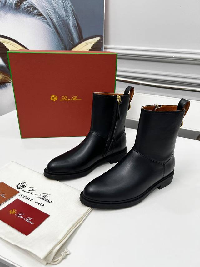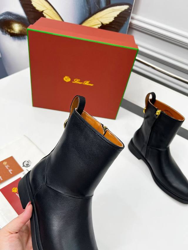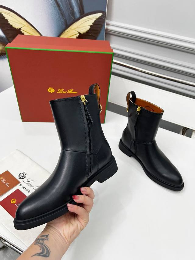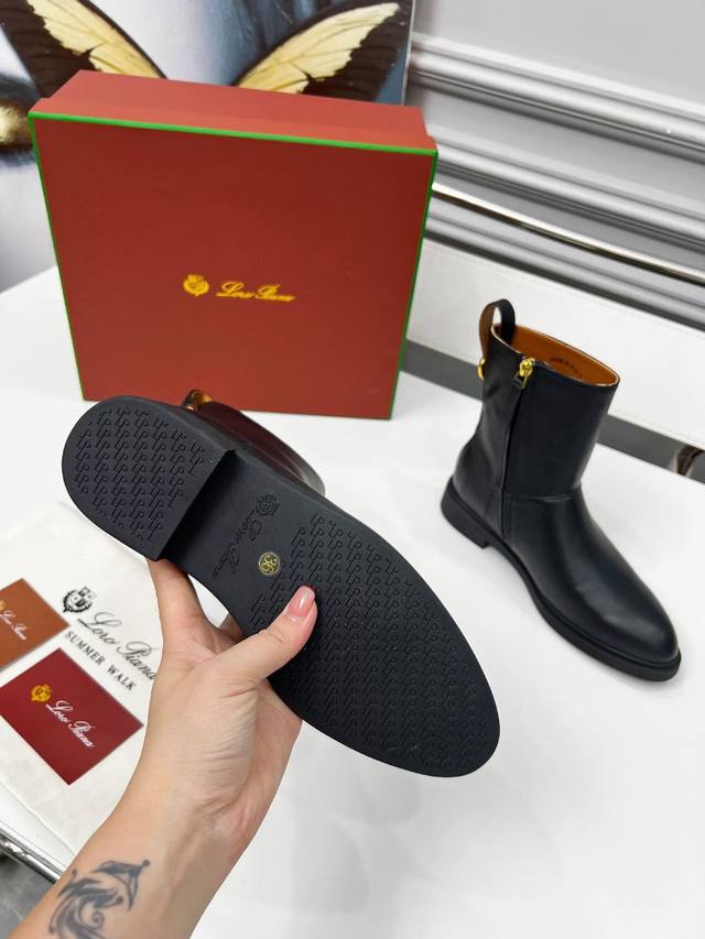 Factory direct sales of top-grain cowhide 440G02, top-quality Loro Piana Kilda ankle boots, side zipper short boots, autumn/winter new style. These iconic ankle boots are crafted from waxed cowhide suede sheepskin, giving them a rustic yet unique vintage aesthetic. The casual yet sophisticated style is suitable for both urban looks and relaxed weekend outfits. Features a Loro Piana non-slip rubber sole. Leather lining, internal zipper closure with matching zipper pulls. Metallic details on the heel. Engraved brand logo leather loop zipper. One-piece matching rubber sole with non-slip Lp details! Upper: Imported genuine calfskin suede. Lining/Insole: Cowhide. Sole: Original molded rubber outsole. Sizes: 35-40, 41 (custom orders are non-refundable).