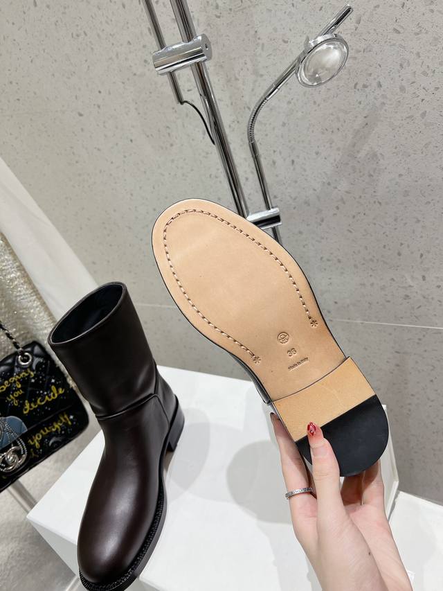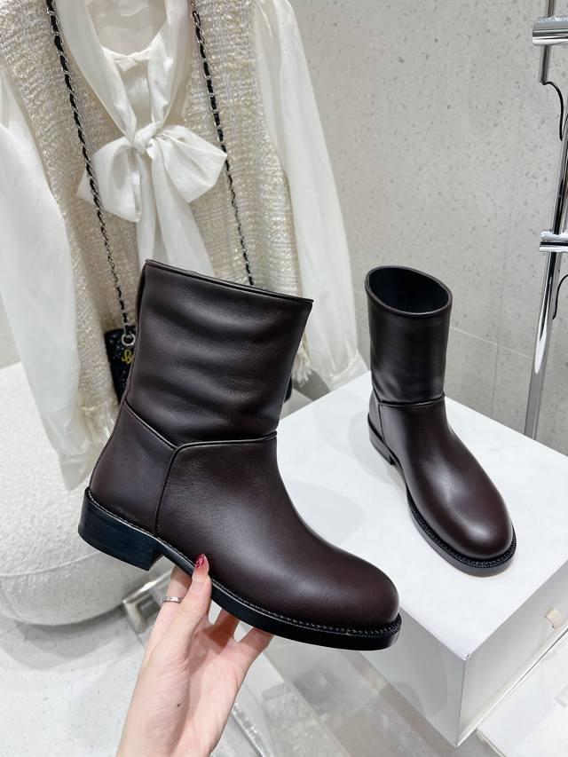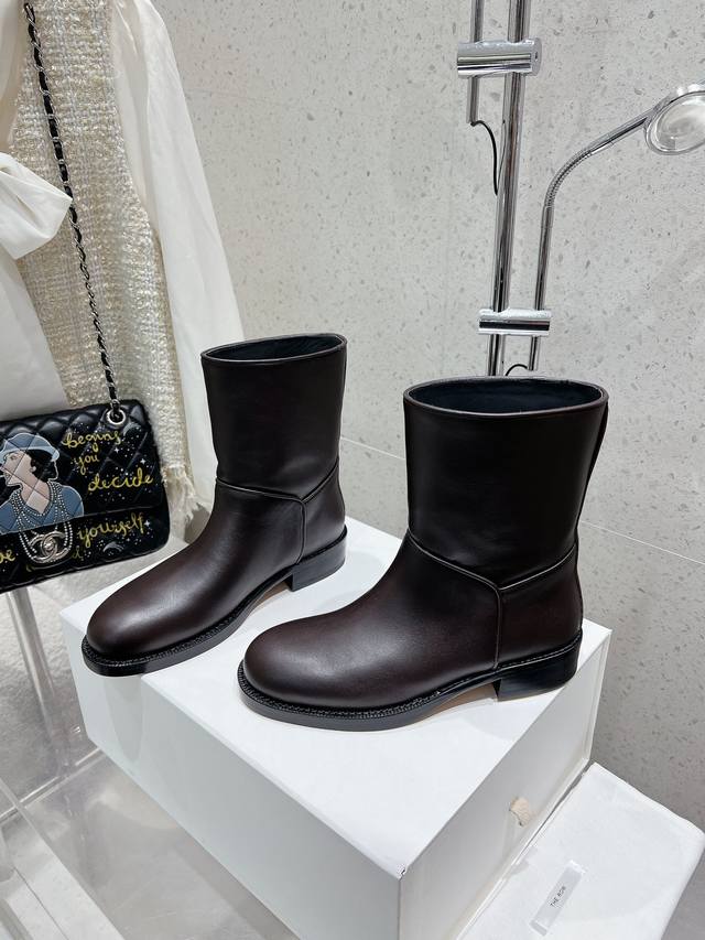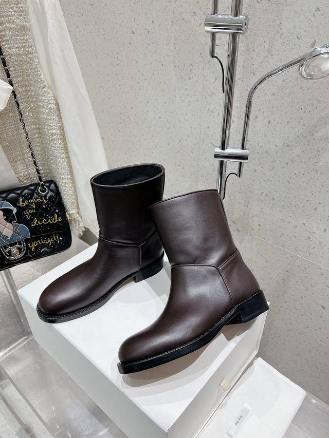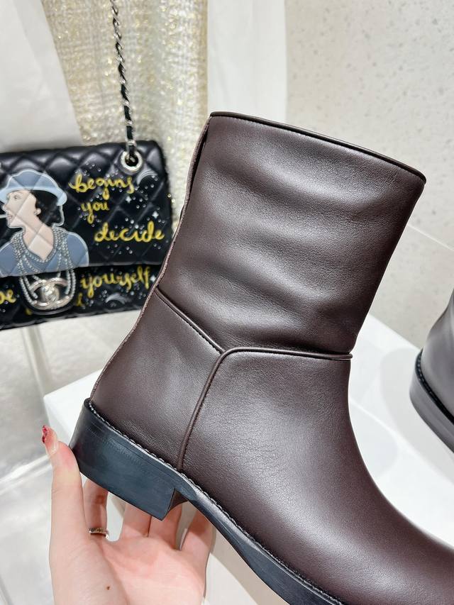 Factory Direct DDD Therow's new autumn/winter ankle boots have never lost in terms of sophistication. These simple, chic, understated boots, without vibrant colors or complicated designs, exude confidence with just a 2cm heel and a sleek square toe. They are made with original custom-made cowhide upper and sheepskin lining. Italian imported genuine leather outsole. Sizes 35-39. 40 is custom-made and non-refundable.