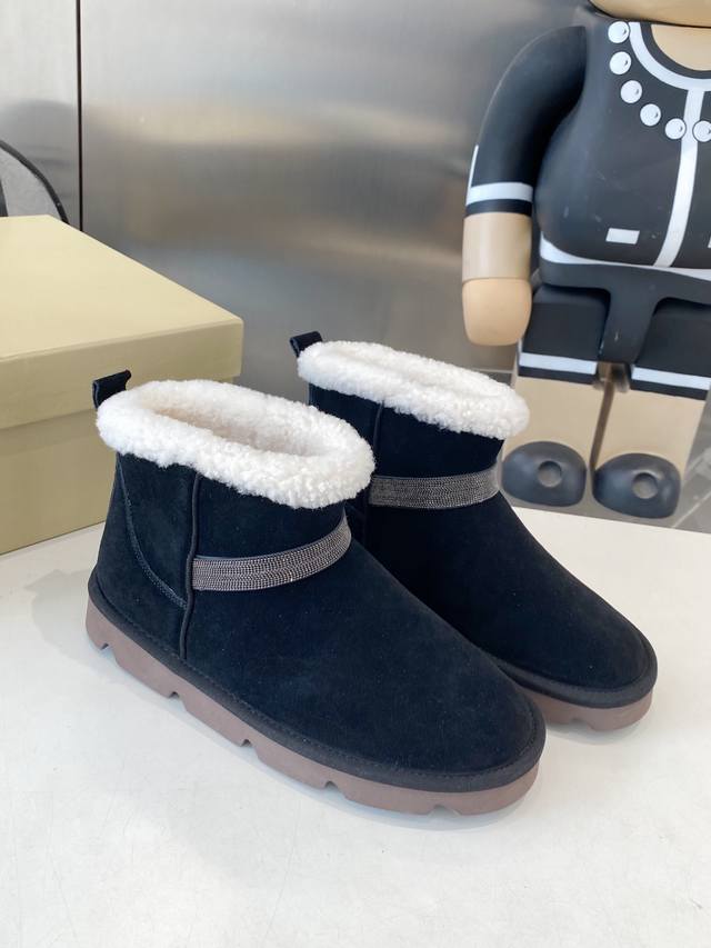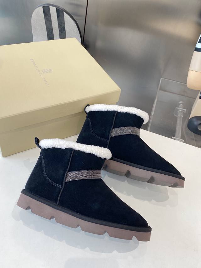 Factory direct, top-quality Brunello Cucinelli winter snow boots, lamb wool lining, outsole: custom-made Italian high-density original outsole, upper: imported high-gloss material, sizes: 35-41, sizes 40-41 (made to order, no returns or exchanges).
