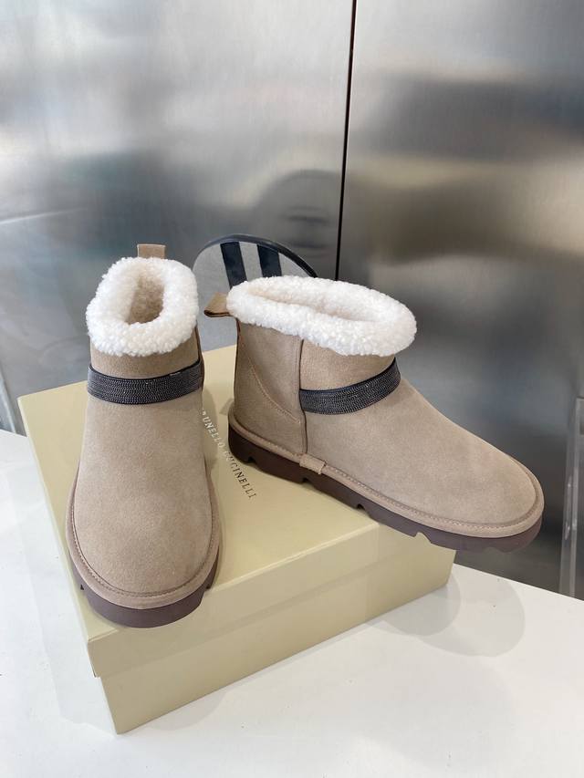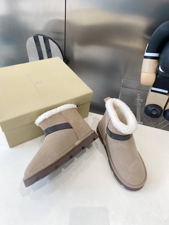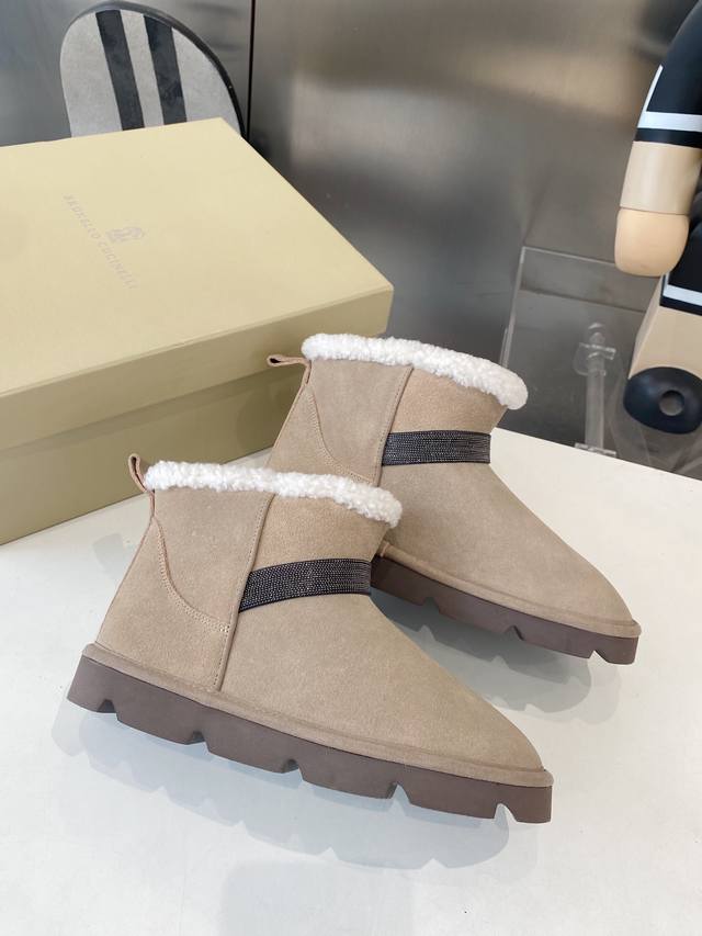 Factory direct, top-quality Brunello Cucinelli winter snow boots, lamb wool lining, outsole: custom-made Italian high-density original outsole, upper: imported high-gloss material, sizes: 35-41, sizes 40-41 (made to order, no returns or exchanges).