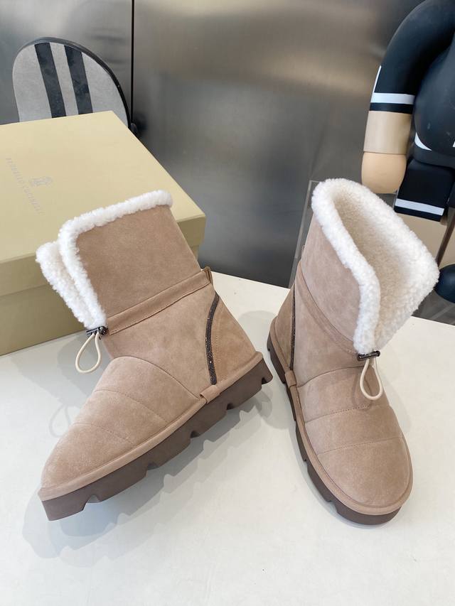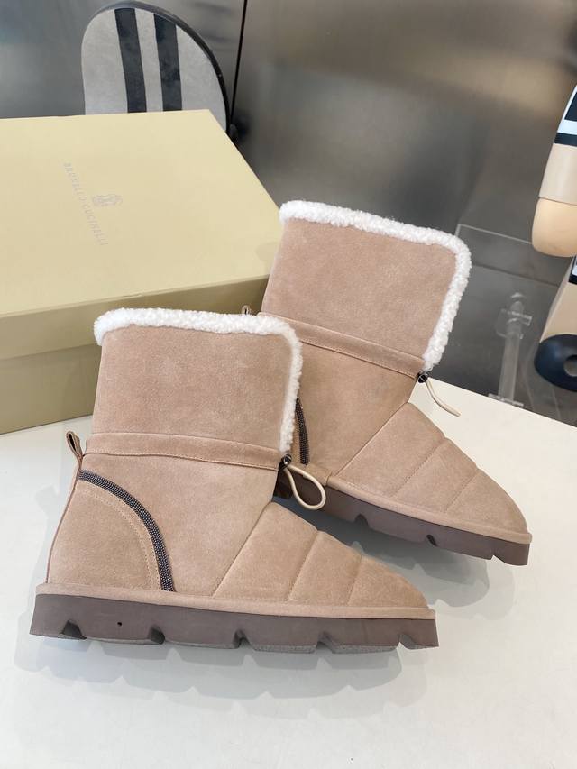 Factory direct, top-quality Brunello Cucinelli winter snow boots. Lining: Imported Australian lamb wool. Outsole: Custom-made Italian high-density original outsole. Upper: Imported high-gloss material. Sizes: 35-41, 40-41 (Made to order, no returns or exchanges).