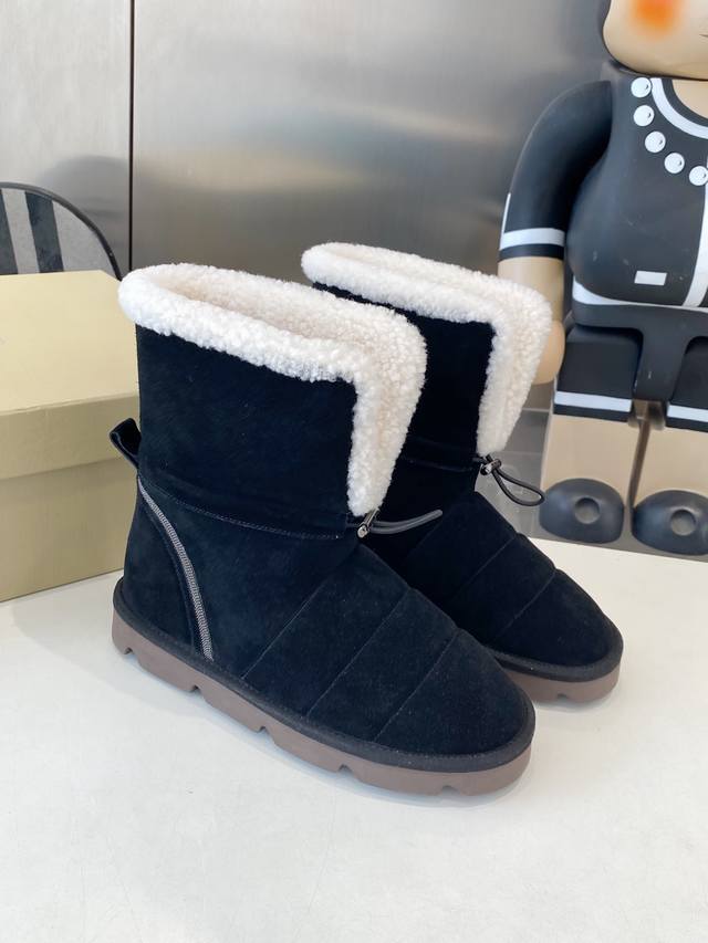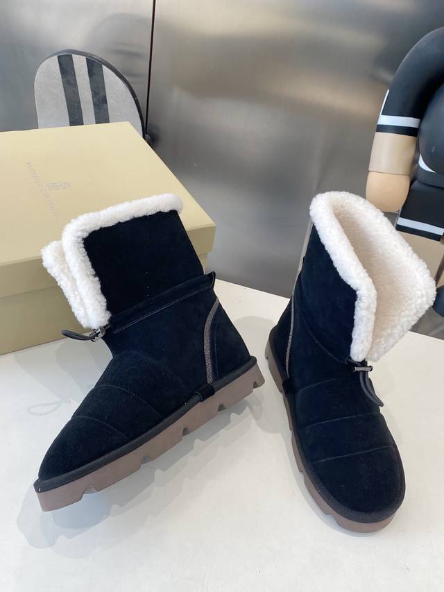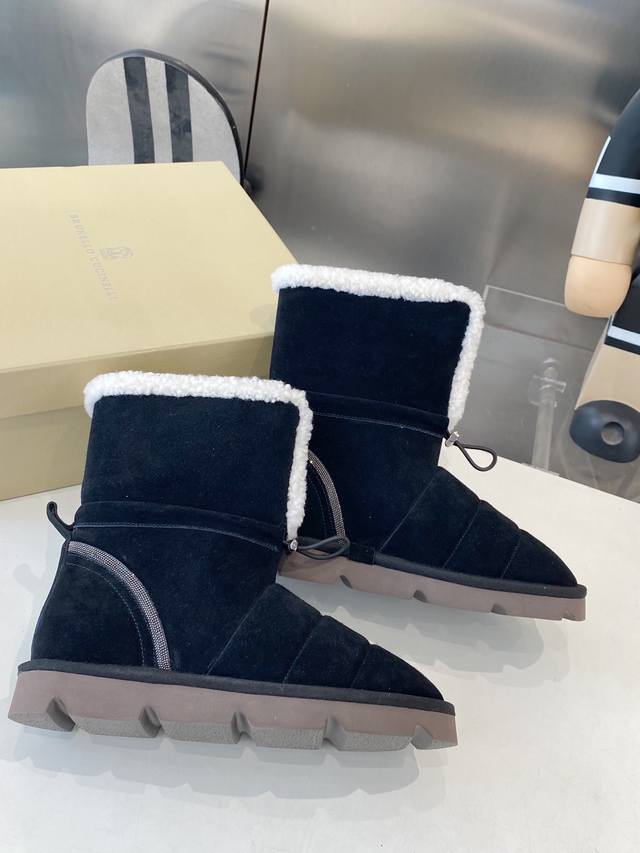 Factory direct, top-quality Brunello Cucinelli winter snow boots. Lining: Imported Australian lamb wool. Outsole: Custom-made Italian high-density original outsole. Upper: Imported high-gloss material. Sizes: 35-41, sizes 40-41 are custom-made and non-refundable.
