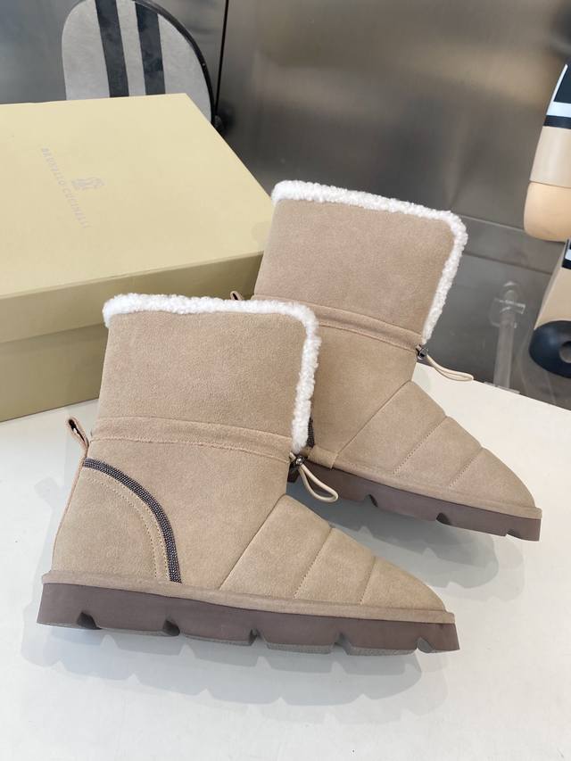 Factory direct, top-quality Brunello Cucinelli winter snow boots. Lining: Imported Australian lamb wool. Outsole: Custom-made Italian high-density original outsole. Upper: Imported high-gloss material. Sizes: 35-41, 40-41 (Made to order, no returns or exchanges).