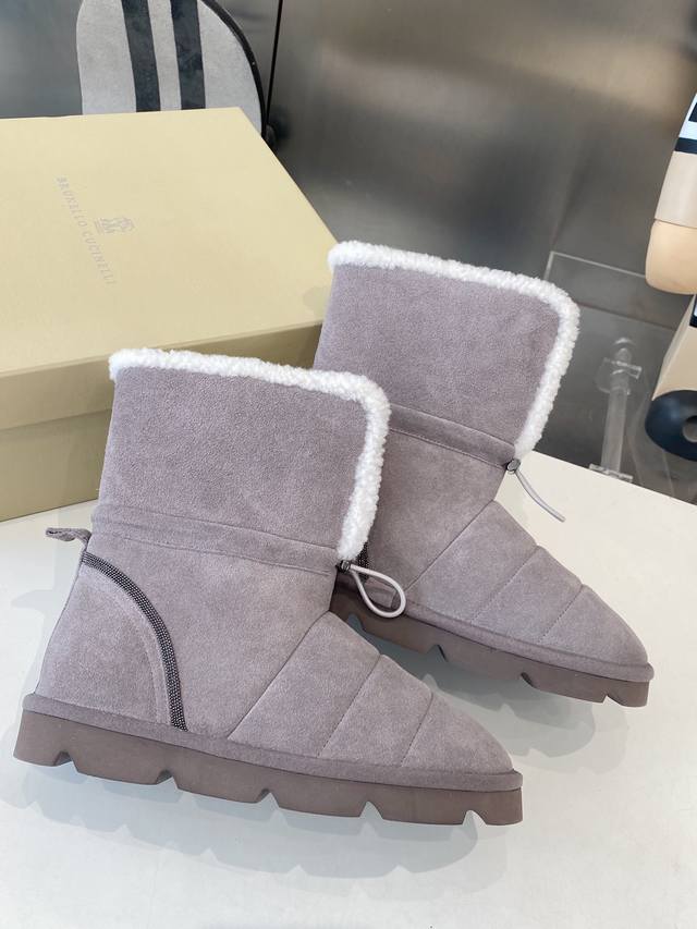 Factory direct, top-quality Brunello Cucinelli winter snow boots. Lining: Imported Australian lamb wool. Outsole: Custom-made Italian high-density original outsole. Upper: Imported high-gloss material. Sizes: 35-41, 40-41 (Made to order, no returns or exchanges).