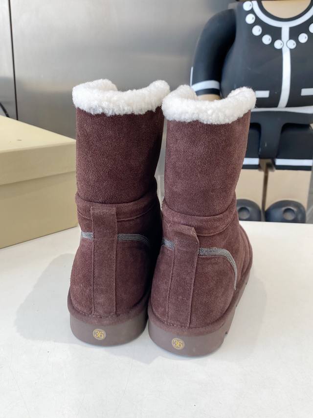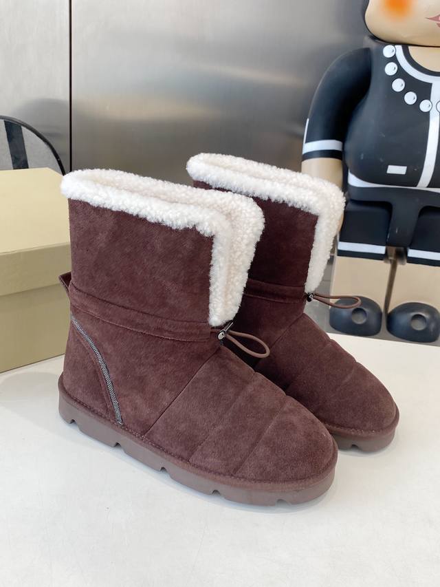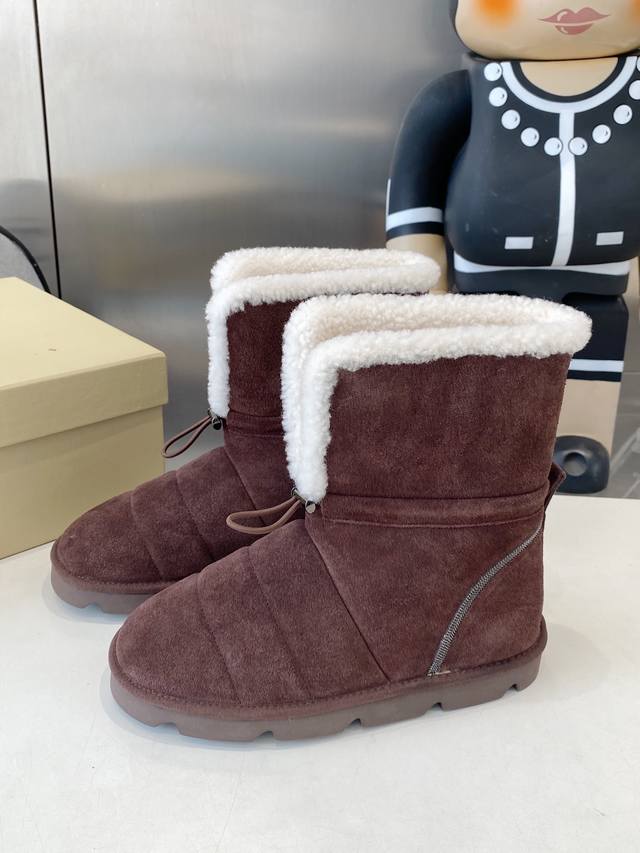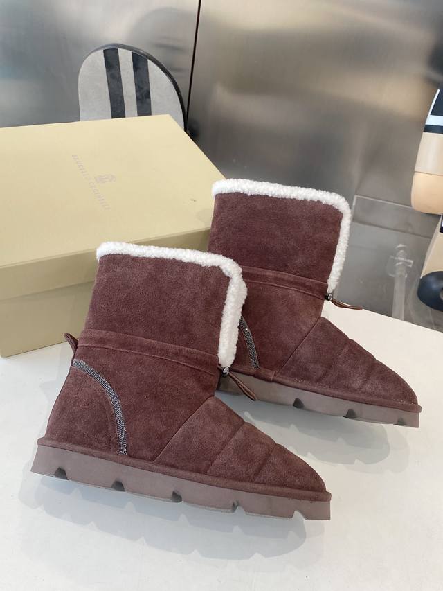Factory direct, top-quality Brunello Cucinelli winter snow boots. Lining: Imported Australian lamb wool. Outsole: Custom-made Italian high-density original outsole. Upper: Imported high-gloss material. Sizes: 35-41, sizes 40-41 are custom-made and non-refundable.