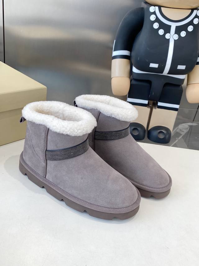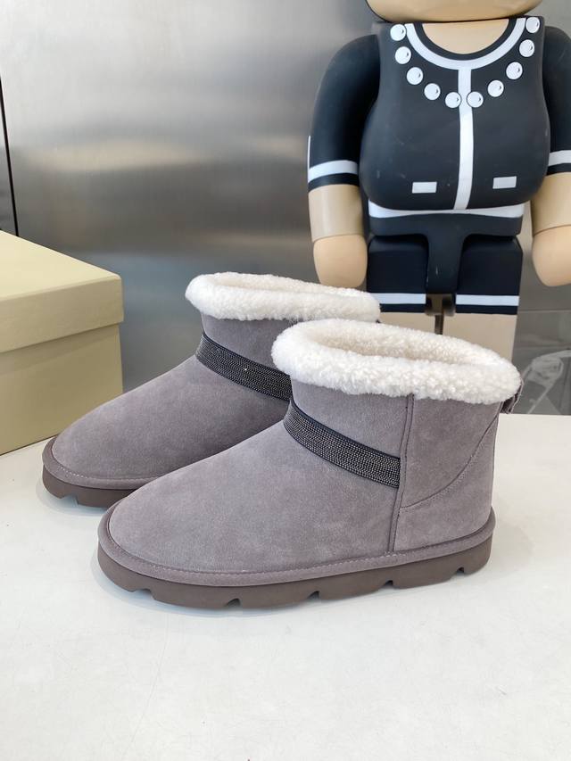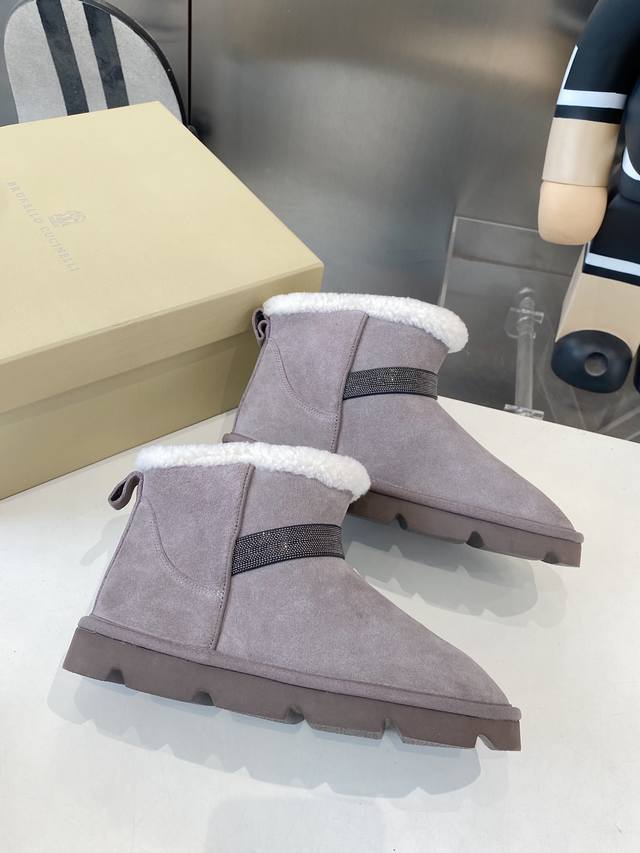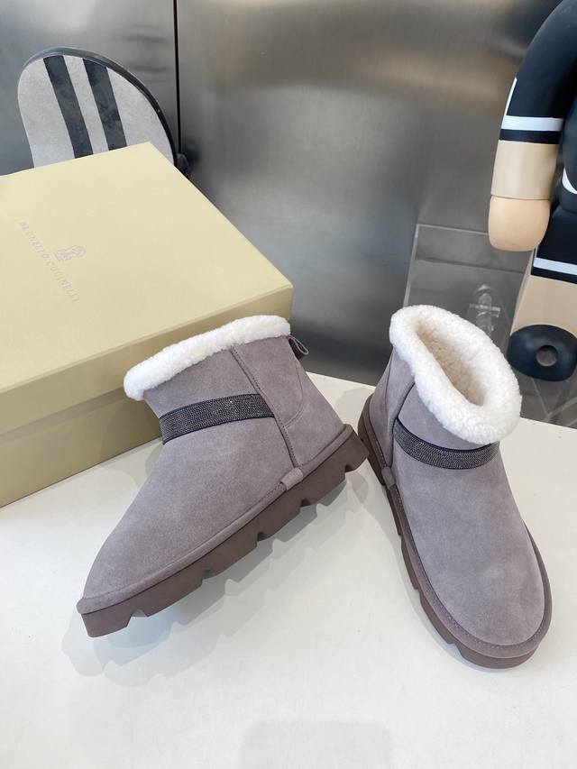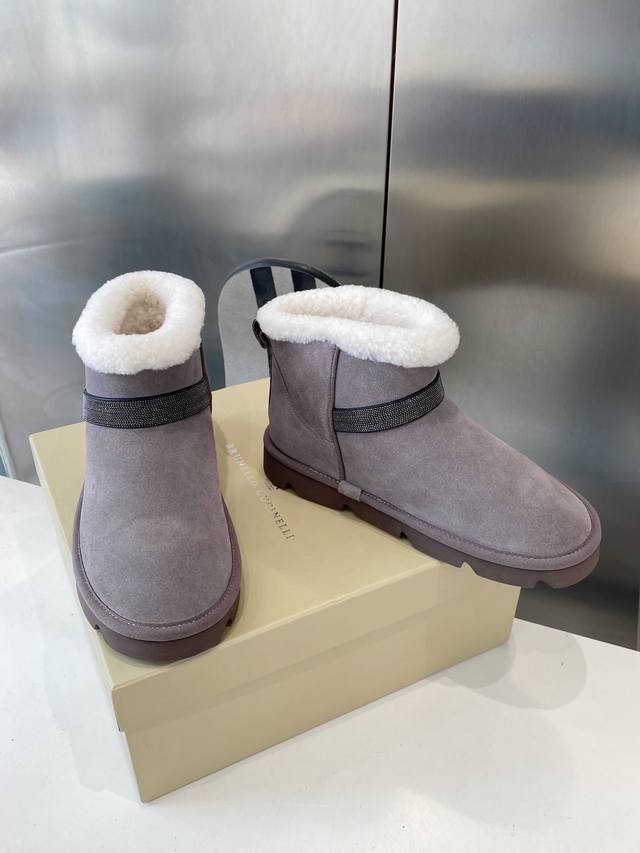 Factory direct, top-quality Brunello Cucinelli winter snow boots with lamb wool lining. Features include: imported Australian lamb wool lining; custom-made Italian high-density original outsole; imported high-gloss fabric; sizes 35-41 (40-41 are custom-made and non-refundable).