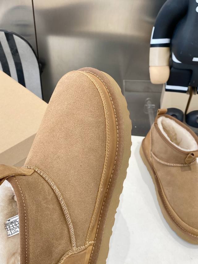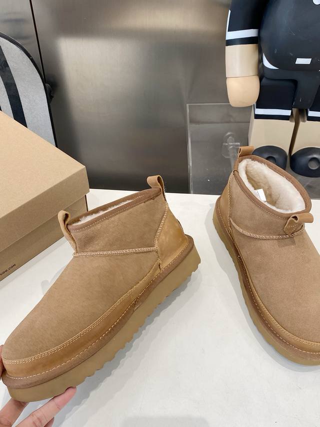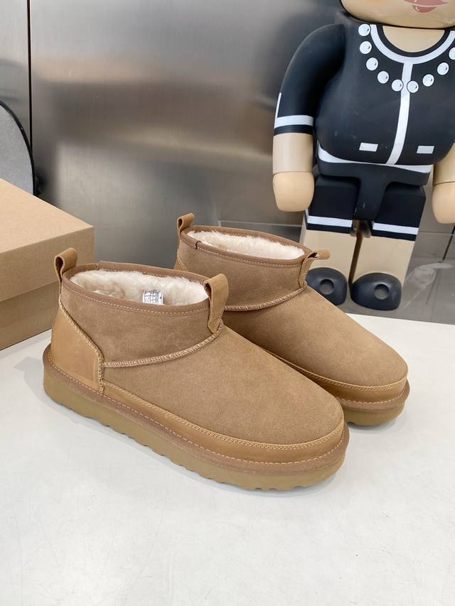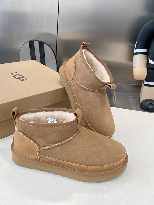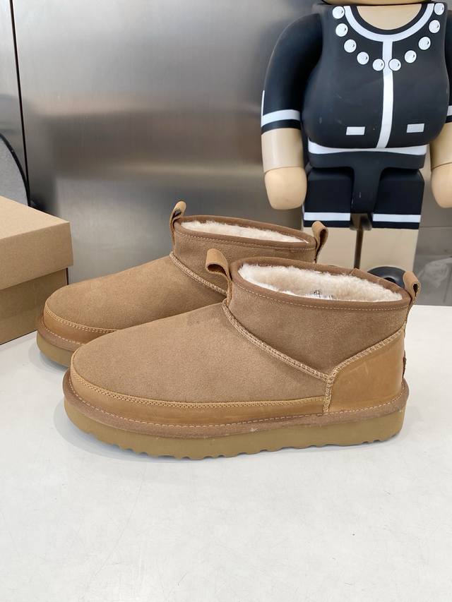 Factory Direct DDD Ugg Autumn/Winter Men's Furry Shoes, Men's Snow Boots, Men's Shoes, Casual Comfortable Flat Round Toe Fashionable Casual Ankle Boots, Slip-on DDD Cowhide Suede + Eva Outsole DDD Sizes 39-45 DDD