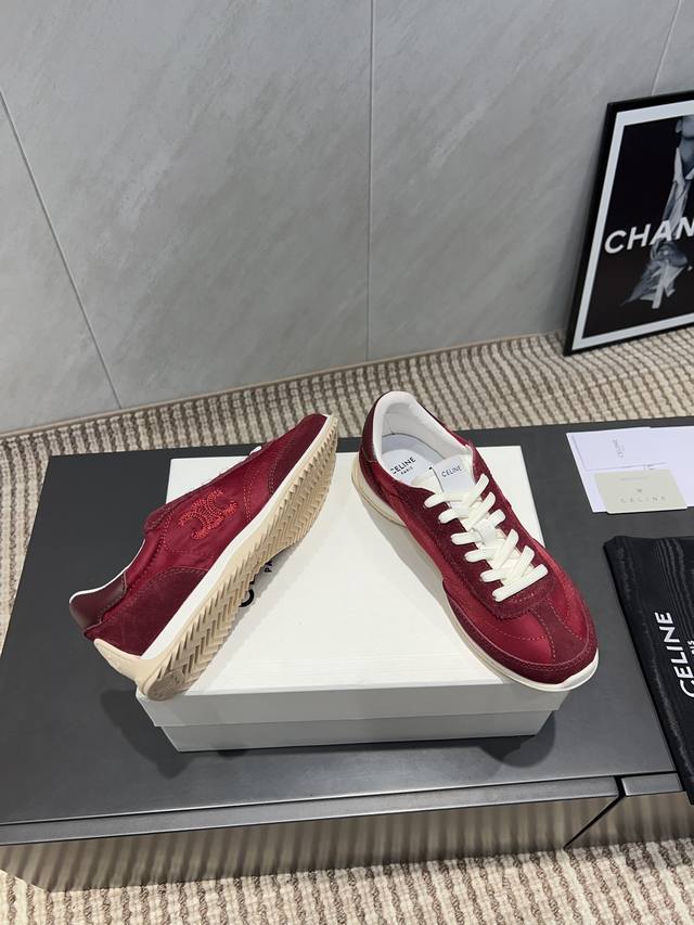 Celln*Celine's latest hit casual collection from the 2025 Vs Paris Fashion Show. Breathable, color-blocked casual shoes. Fashionable, casual, and trendy for women. Authentic 1-1 Early Fall Korean-inspired edition! Top-quality workmanship and impeccable detailing, premium quality! Contrast color stitching design! Stylish, casual, and stylish! For a truly stylish and elegant look! Simple line design, three-dimensional cutting, super invincible style, looks good no matter how you match it, super popular elements and colors, the whole set is youthful and beautiful, easy to wear in the crowd to attract attention and eye-catching wearing effect, casual and comfortable and fashionable and versatile, no sense of age high-quality casual suit