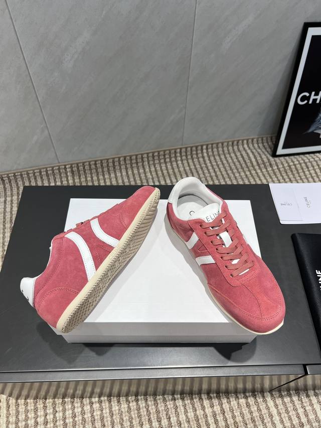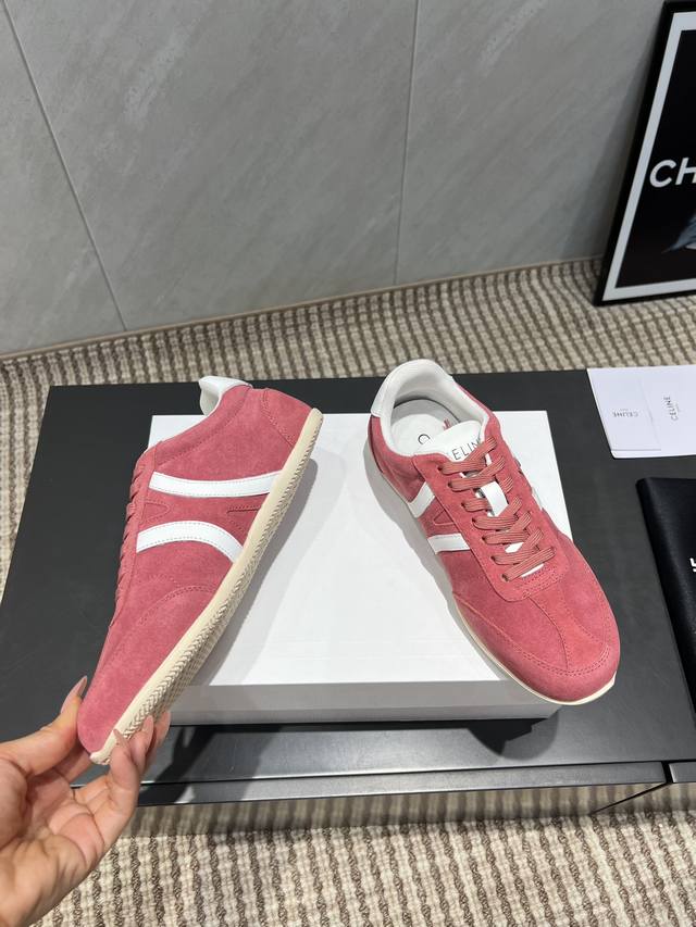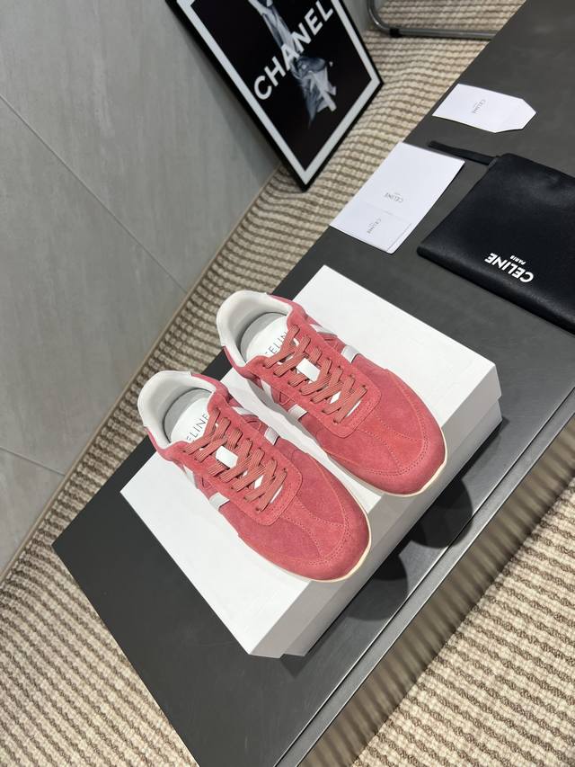 Celln*Celine's latest hit casual collection from the 2025 Vs Paris Fashion Show. These color-blocked lace-up sneakers are a trendy, casual style for women. Authentic, authentic 1-1 Early Fall Korean-inspired edition! Top-quality workmanship and impeccable detailing, guaranteed quality! Contrast-color stitching design! Stylish, casual, and stylish! For a truly stylish and elegant look! Simple line design, three-dimensional cutting, super invincible style, looks good no matter how you match it, super popular elements and colors, the whole set is youthful and beautiful, easy to wear in the crowd to attract attention and eye-catching wearing effect, casual, comfortable and fashionable, no sense of age high-quality casual suit