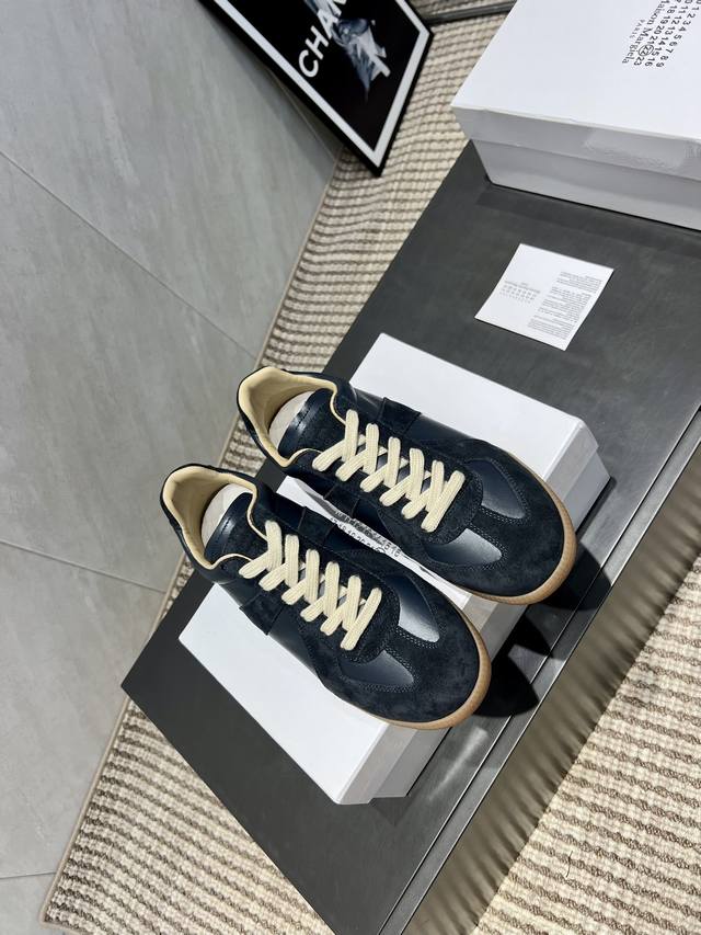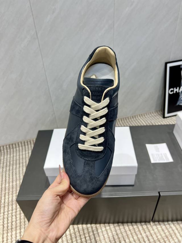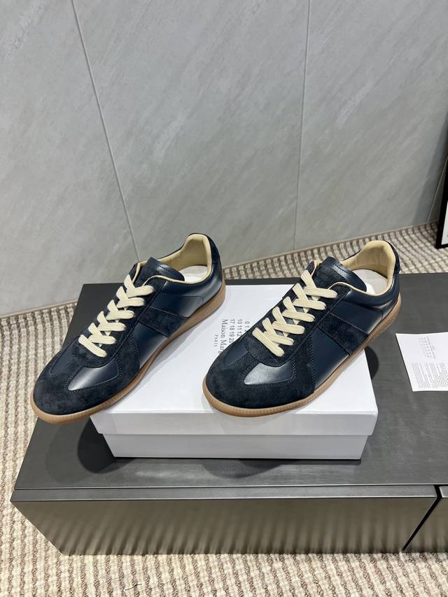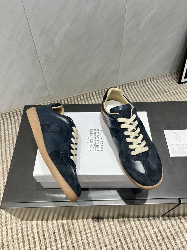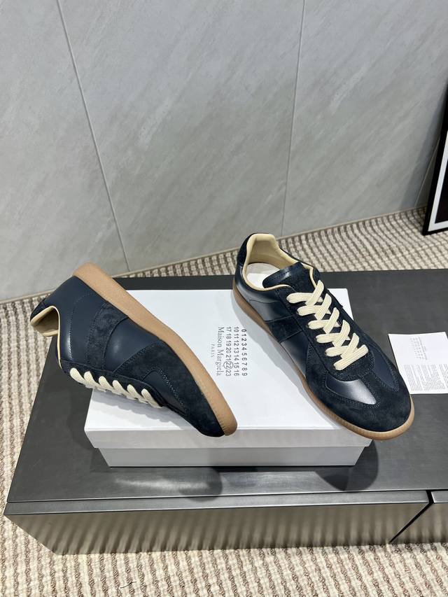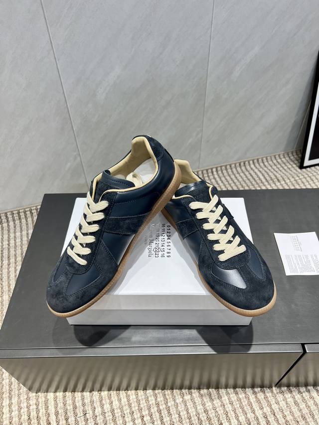 Just hearing the retro style immediately brings to mind the classic M*Arginal. Retro and fashionable, clean and refreshing color schemes for spring, summer, autumn and winter, comfortable, cool and casual style design, very Margiela style, pressure-free to wear, full of pioneering elements, original packaging, a light luxury trendy style, combining multiple elements, designed by Margiela designers, this German training shoe continues the classic T-shaped genuine leather splicing, after multiple careful improvements by the design team, just to let you experience the most original military flavor~ Designer design craftsmanship: combining sports and leisure top-tier last craftsmanship, no sole peeling, no glue smell, using last craftsmanship