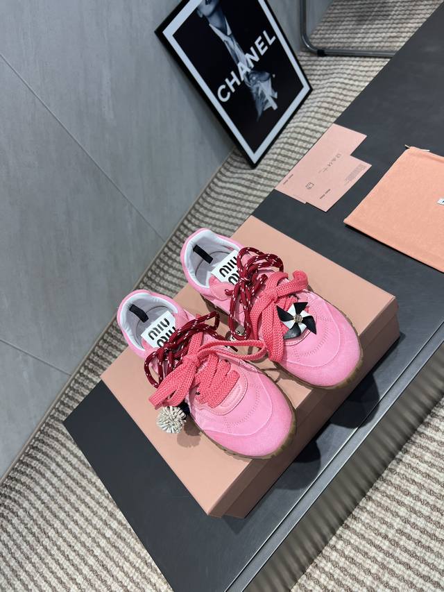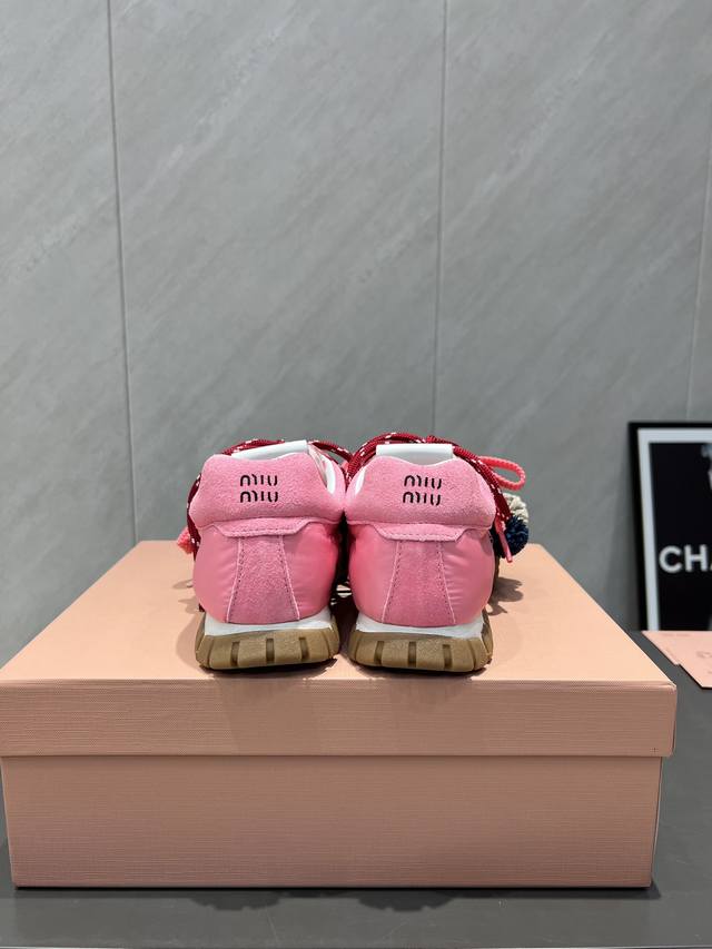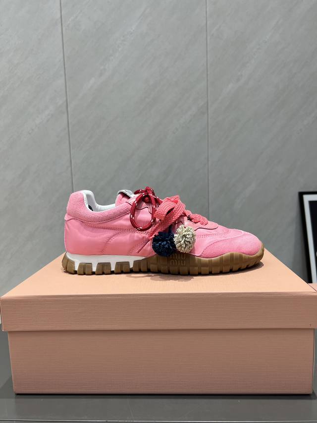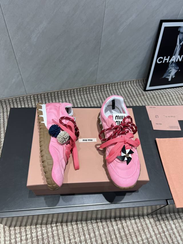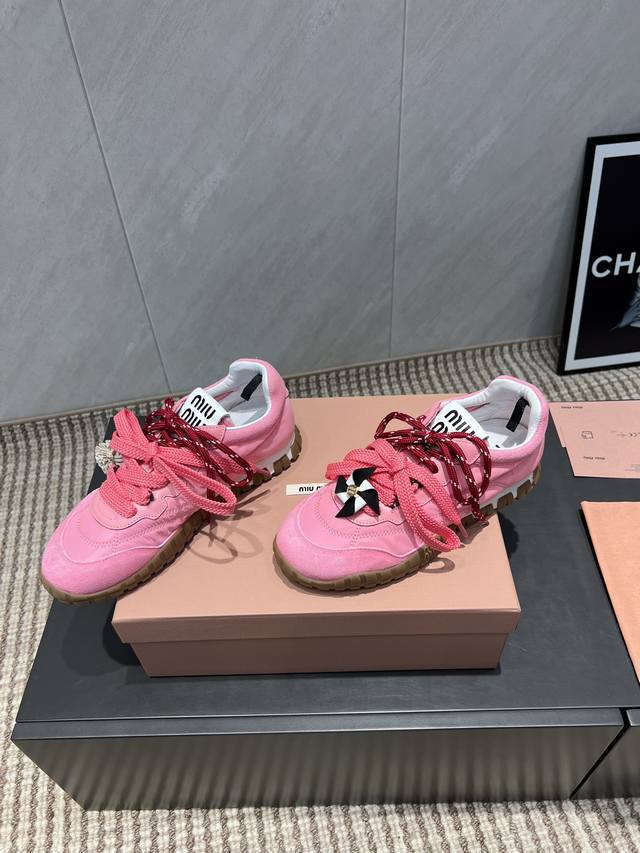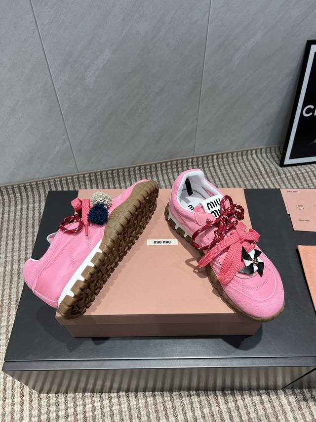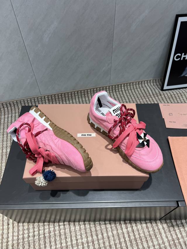 Miumiu's latest hit avant-garde design, Miu Miu style is integrated into the simple lines of these thick-soled canvas sneakers.
