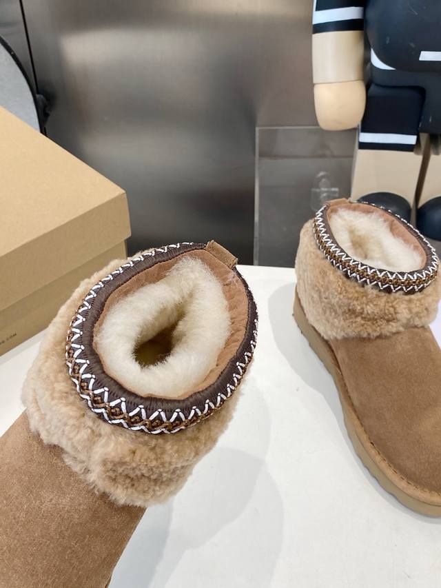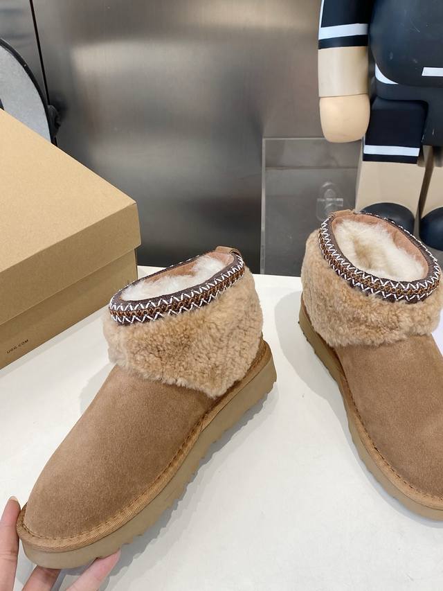 Factory export version, heart-shaped design with ethnic style for a fashionable and warm look. Denim upper lining + wool lining. Available in black, chestnut, and tweed. Sizes 35-41.