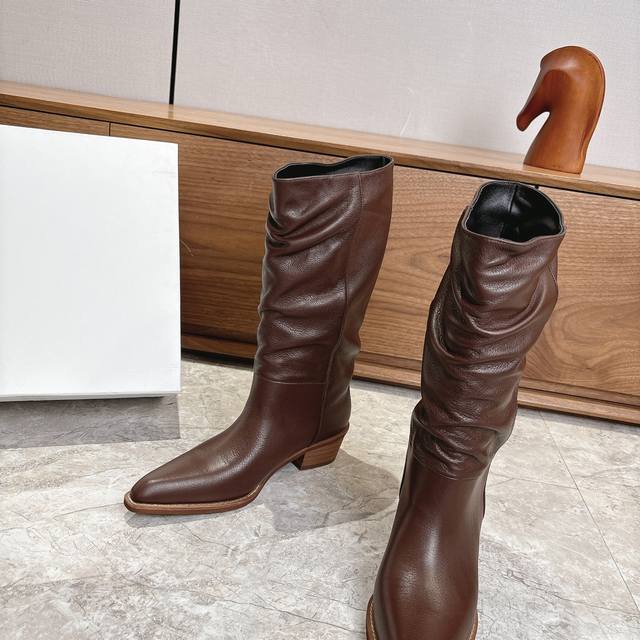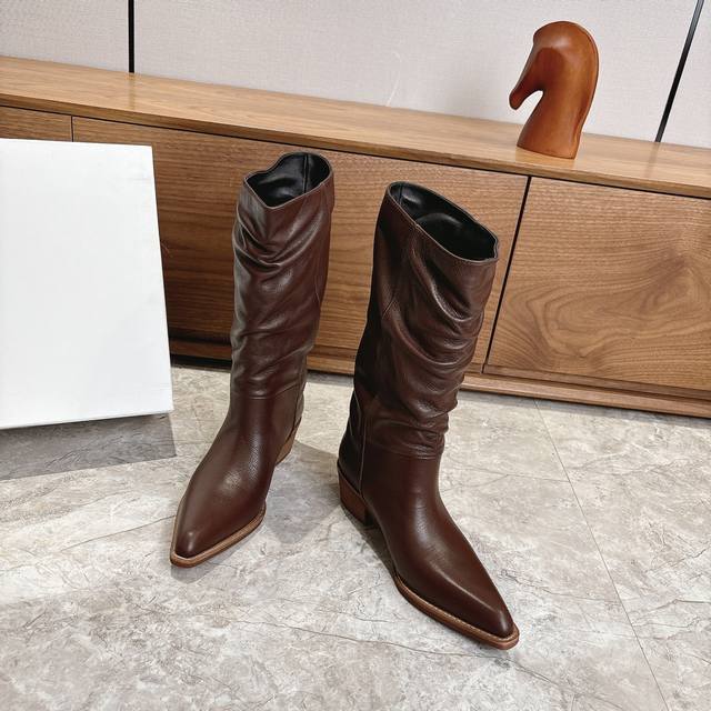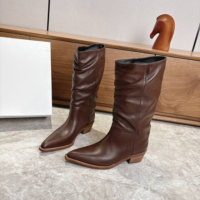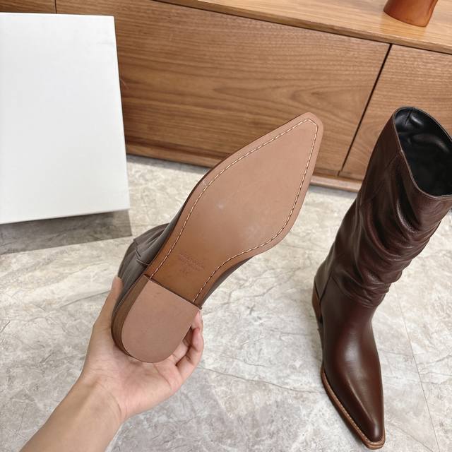 Factory Khaite 2025 autumn and winter new style boots are cool and cool. They may not be popular with men, but they will definitely be popular with women. The shoe shape is slim and fashionable, and the slight accumulation makes the legs look thinner. The goddess's versatile skinny boots can easily show off fashionable long legs.