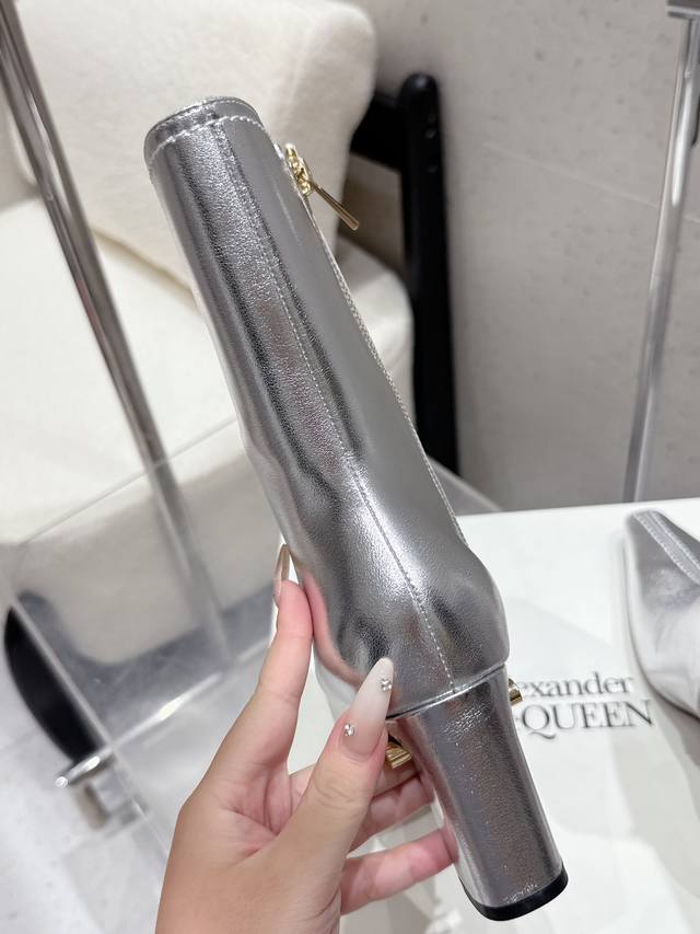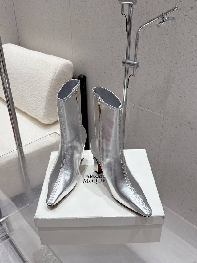 McQueen 25Ss autumn/winter new block-heeled pointed-toe side zippered ankle boots. These minimalist, ultra-soft, comfortable, and stylish low-heeled boots are a must-have. They're free of elaborate decorations and boast a superb vintage feel. Their pure and minimalist design is both neat and poetic, making them versatile and undeniably stylish. The square toe design is incredibly youthful. While retaining elegance, these boots also offer a youthful and fashionable feel, projecting a stylish allure with vibrant colors and refined lines. Upper: Crafted from genuine imported first-grain soft patent leather. Lining: Sheepskin. Sole: Authentic Italian leather outsole. Sizes: 35-40. Shoe size 40 is non-refundable.