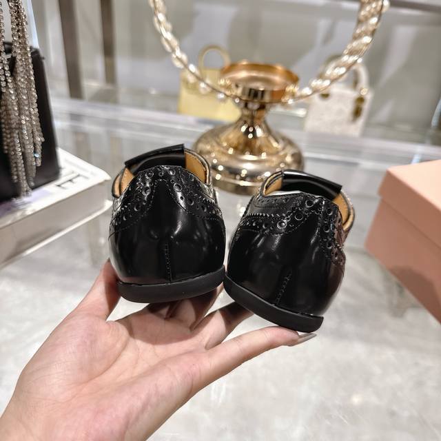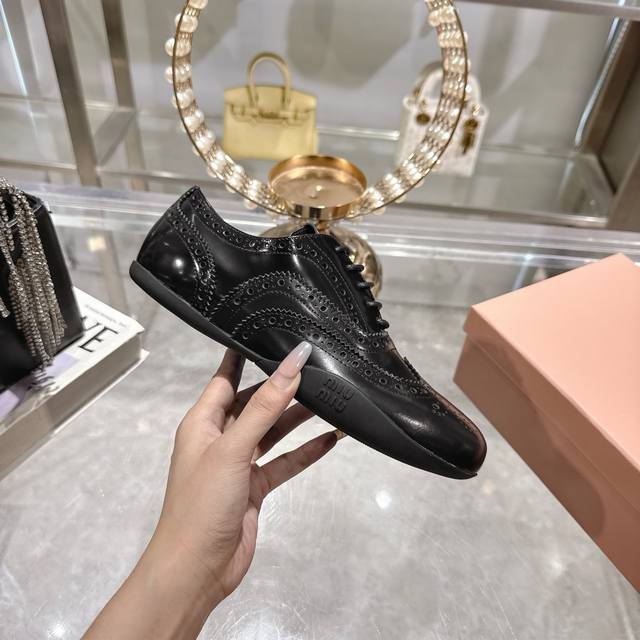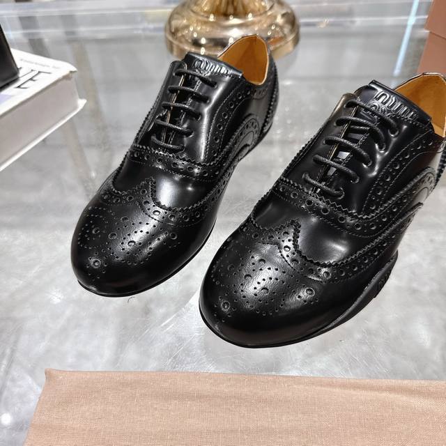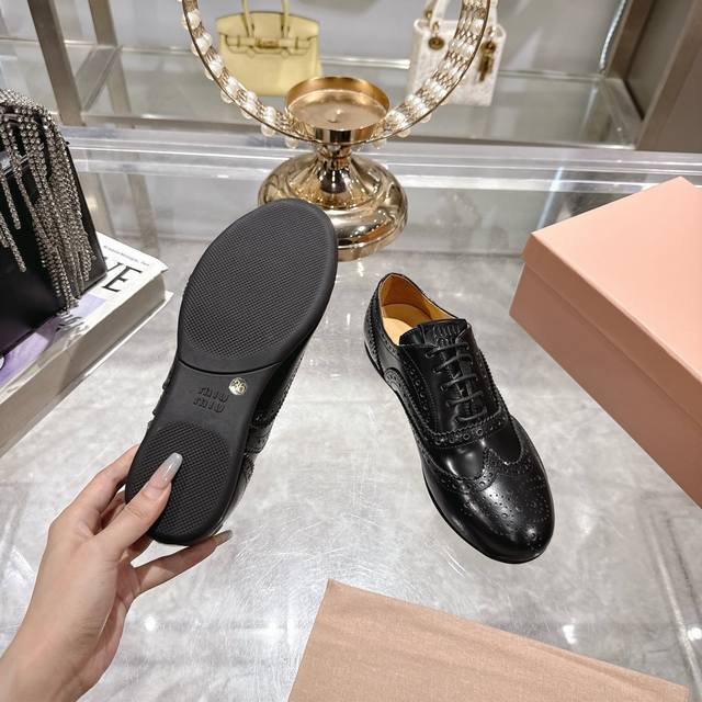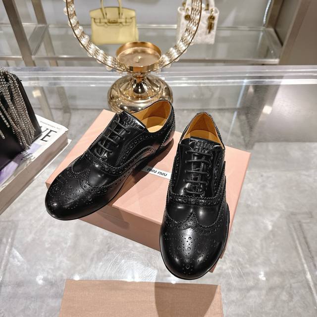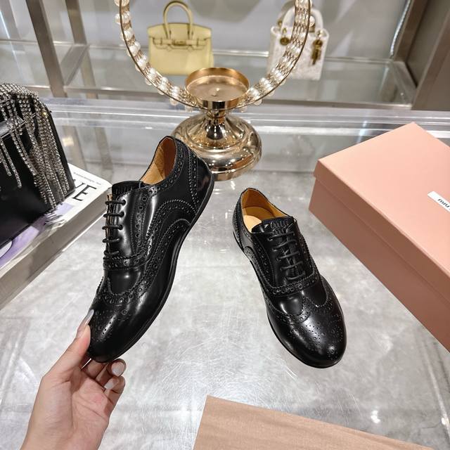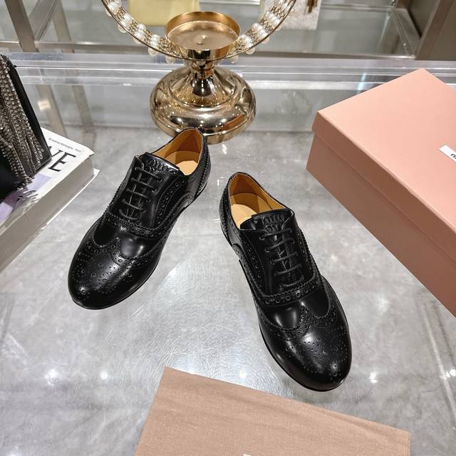 Factory Miu Miu 25Ss Miu Miu new autumn and winter British style lace-up square-toe single shoes
