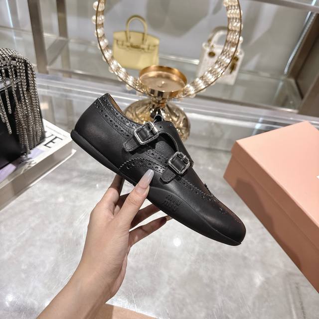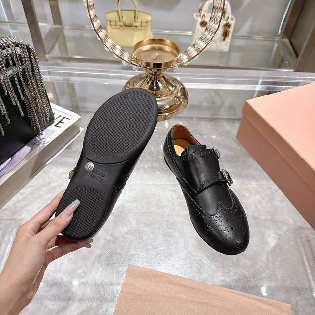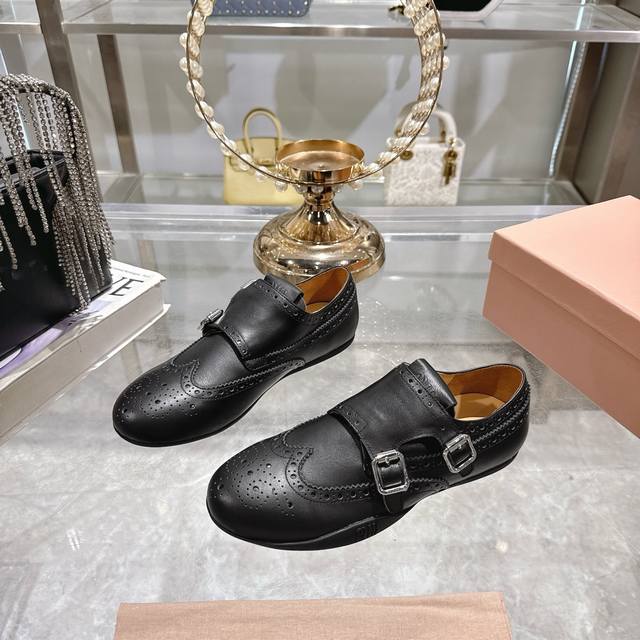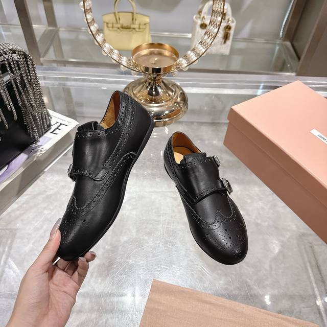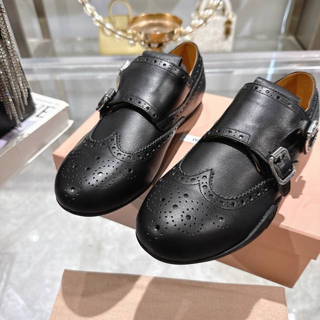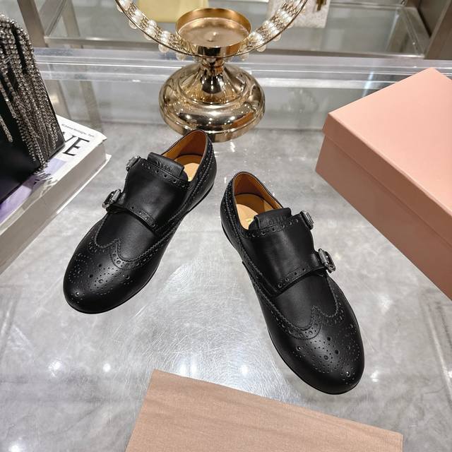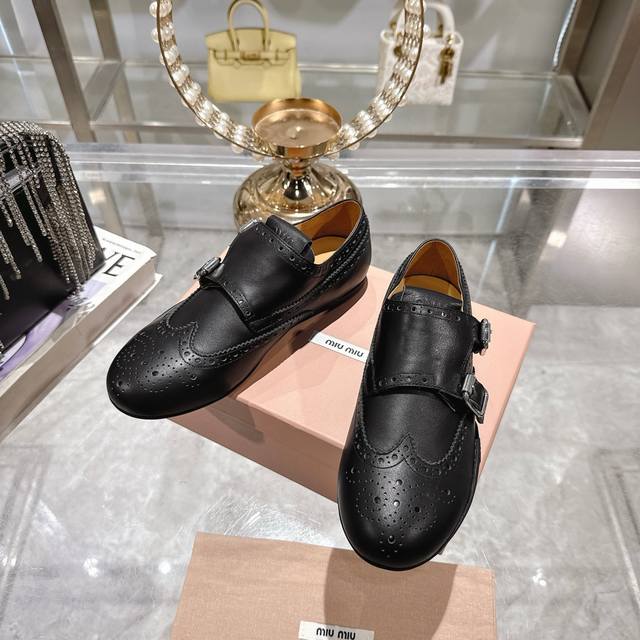 Factory Miu Miu 25Ss Miu Miu new autumn and winter British style lace-up square-toe single shoes
