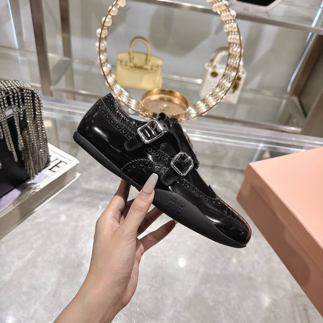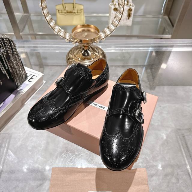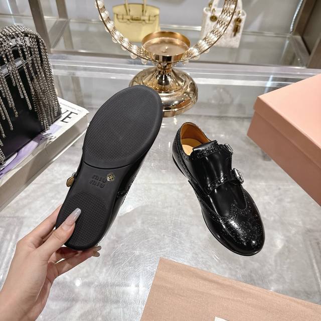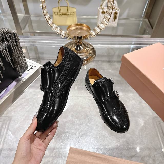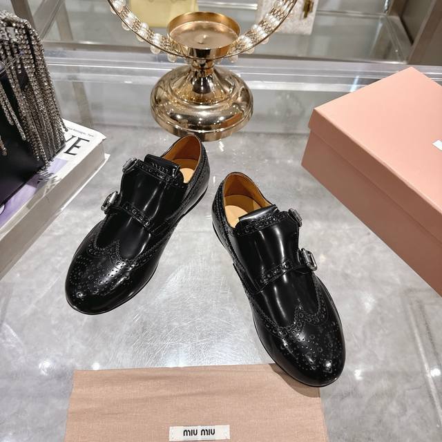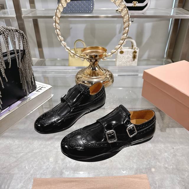 Factory Miu Miu 25Ss Miu Miu new autumn and winter British style lace-up square-toe single shoes