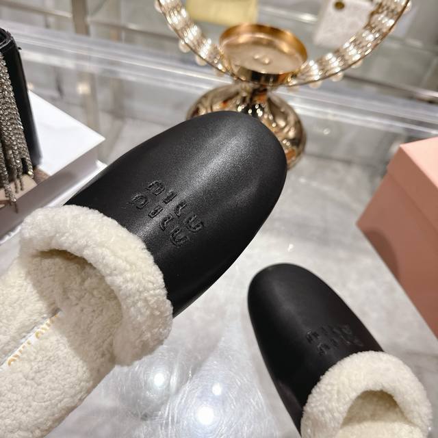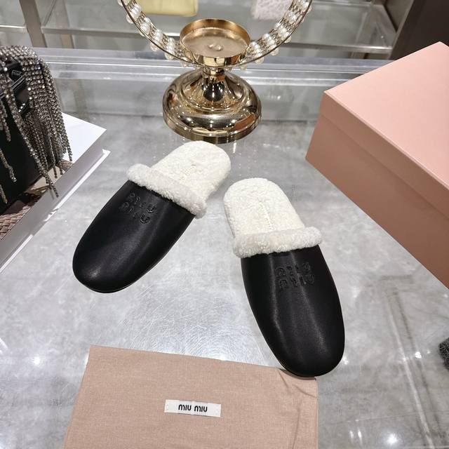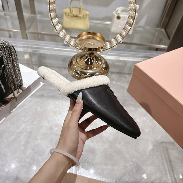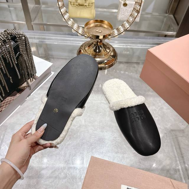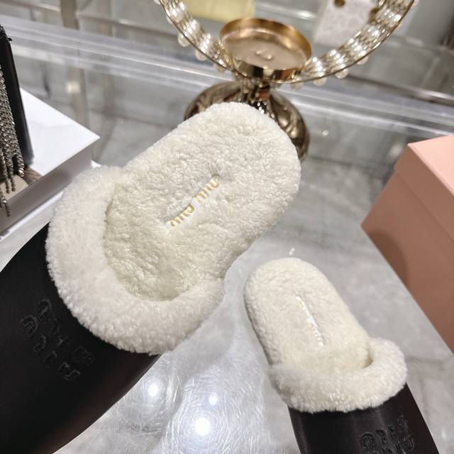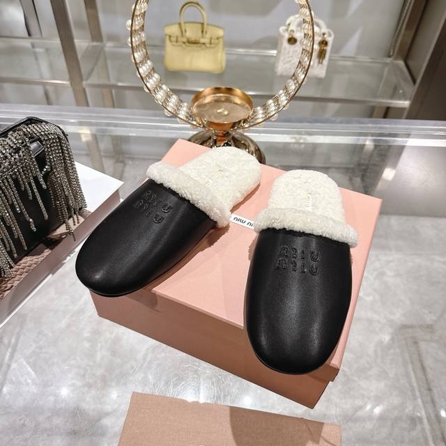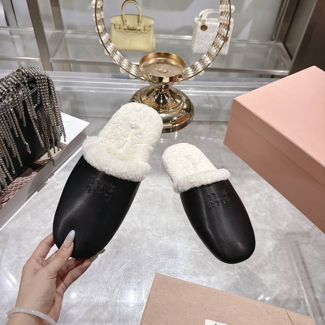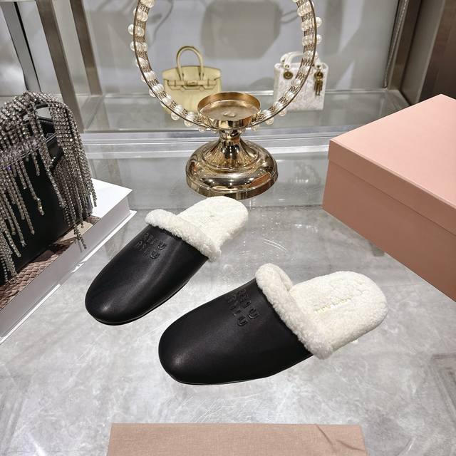 Factory Miu25 autumn and winter new imported wool slippers with closed toe and half-slip