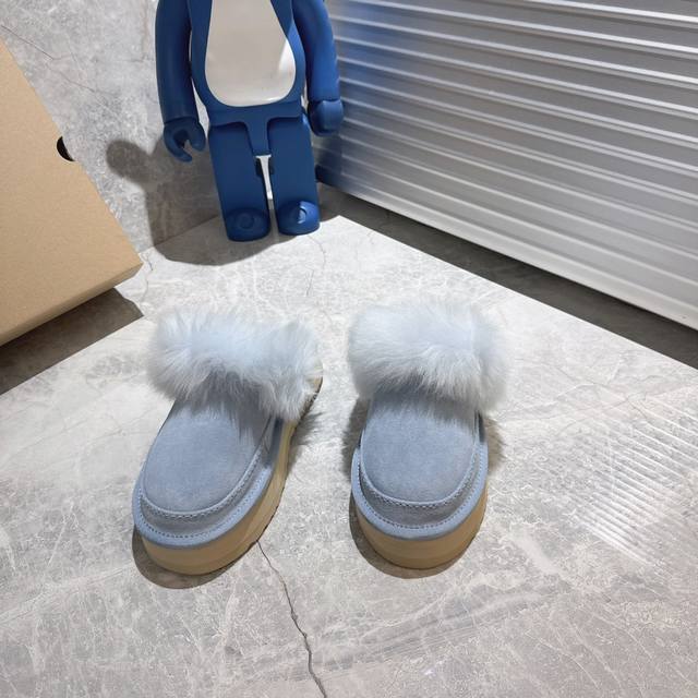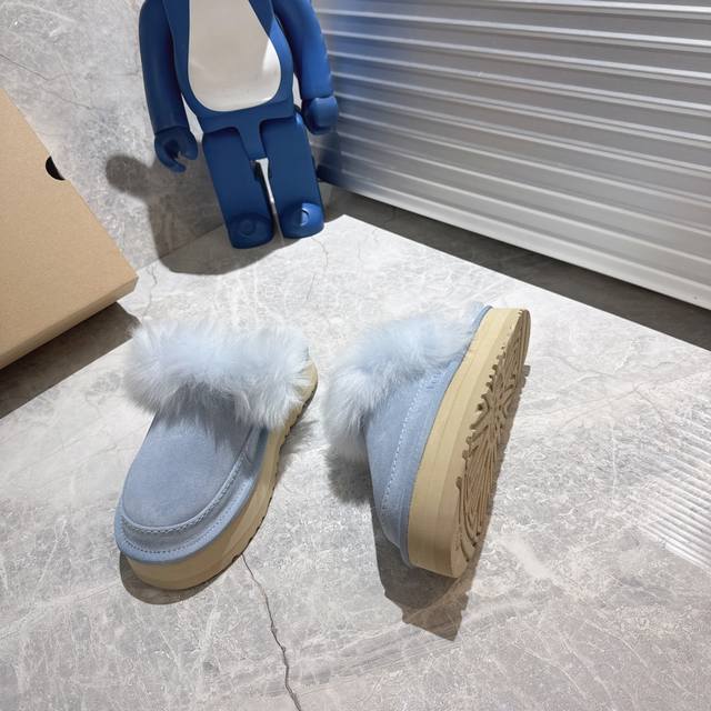 Factory New Ugg Series DDD The Titzcutt long-haired slippers are absolutely amazing! DDD Suede upper and sheepskin collar DDD The texture is off the charts DDD It's like stuffing your feet into a warm cloud DDD The platform sole makes you look taller and your legs longer, perfectly balancing your proportions for autumn and winter DDD The half-slip-on design makes them easy to slip on and go DDD Size: 35-40 DDD