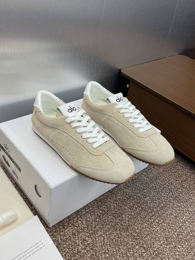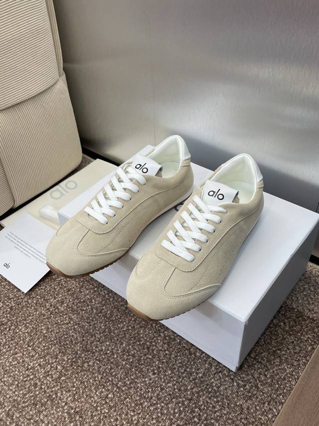 Alo 2025 Autumn and Winter Haute Couture Series Catwalk Couple New Lace-up Dexun Casual Sports Shoes Celebrity Same Style Letter Logo Round Toe Colorblocking Forrest Gump Running Shoes