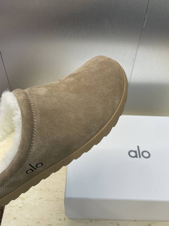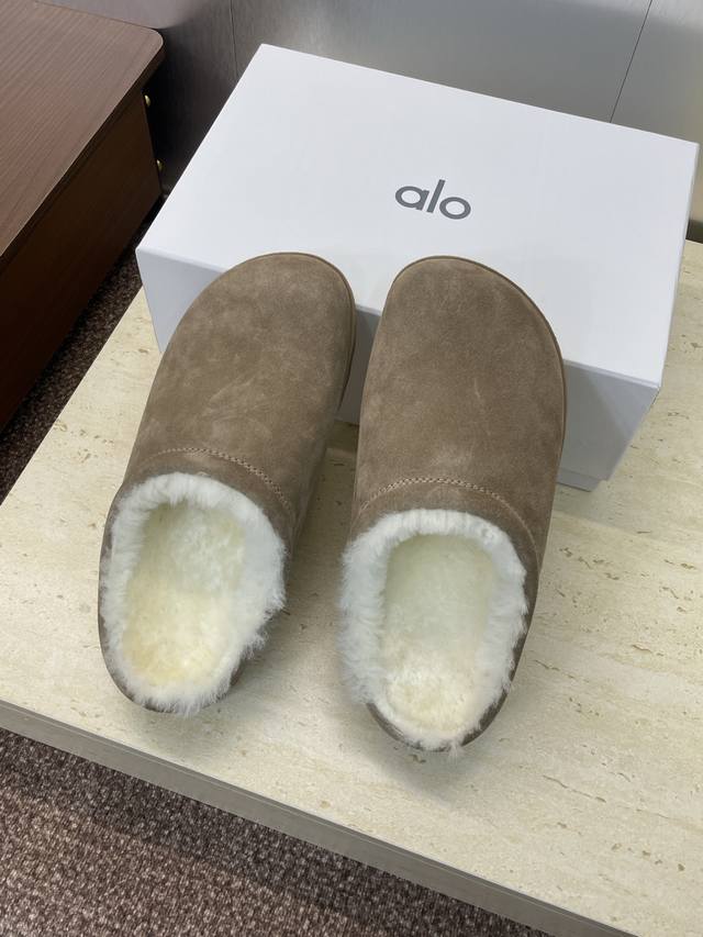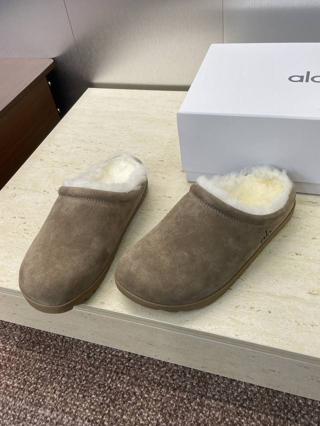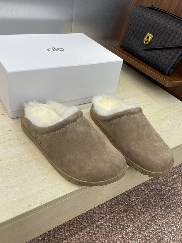 Alo 2025 autumn and winter new letter logo mules women's shoes celebrity style flat square toe home fur slippers market top version