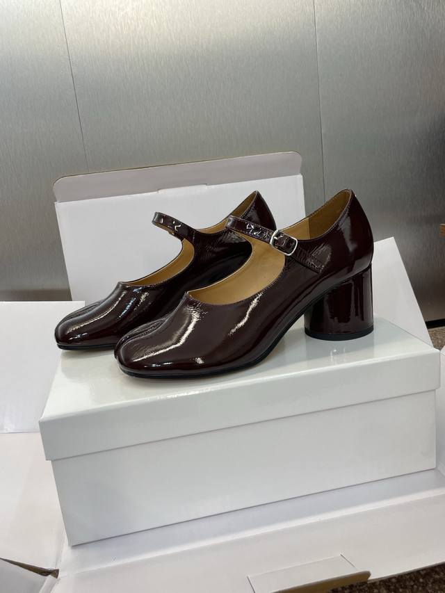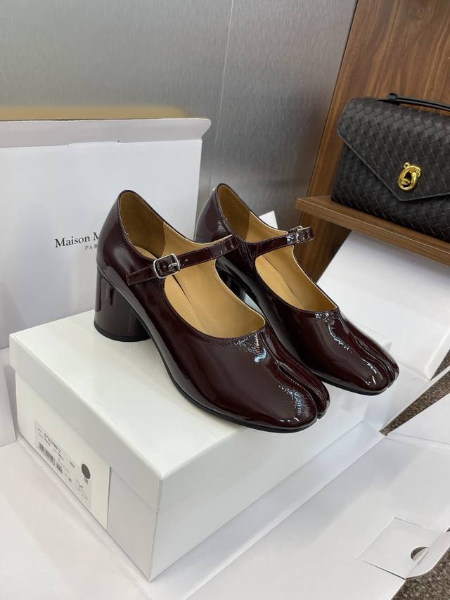 Maison Margiela Margiela 2025 autumn and winter new high-heeled Mary Jane ballerinas Mm6 thick heel belt buckle split-toe single shoes