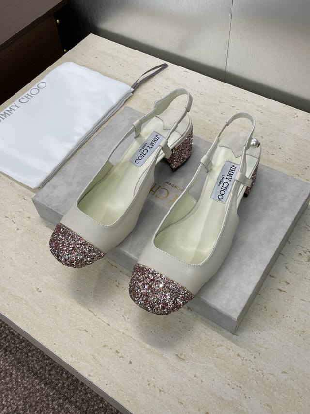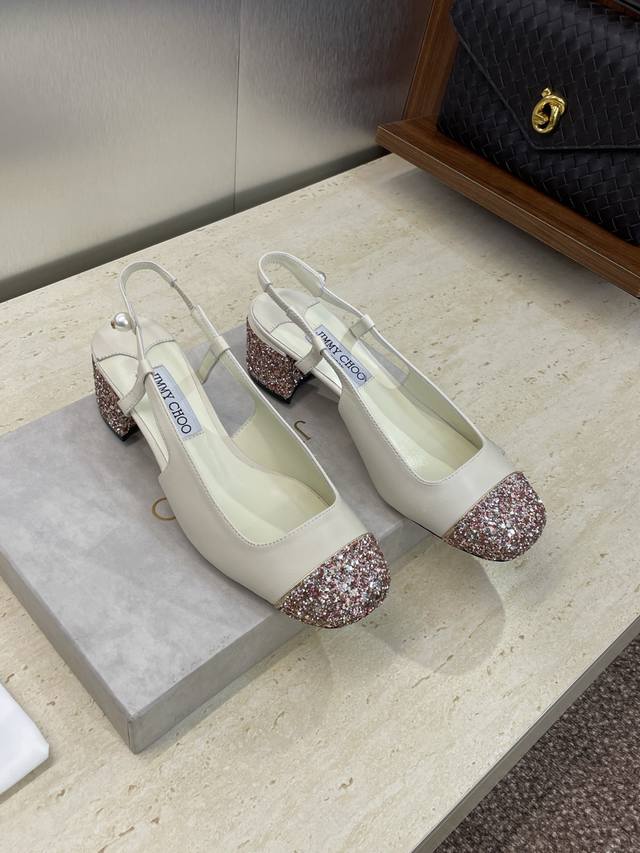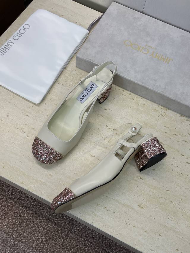 Jimmy Choo Jimmy Choo 2025 Spring and Summer New Mary Jane Hollow Square Toe Thick Heel Women's Shoes Jc Letter Logo Hardware Buckle Low Heel Colorblock Sandals