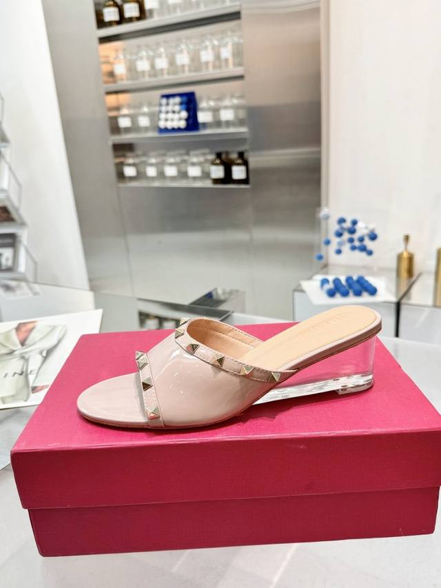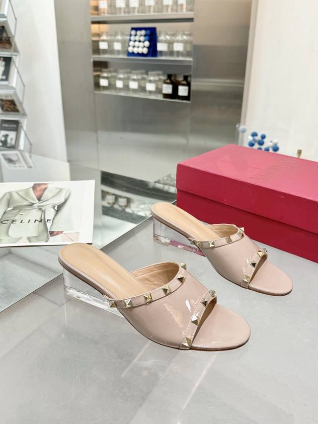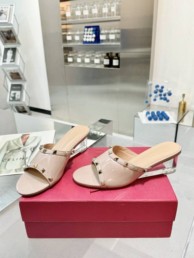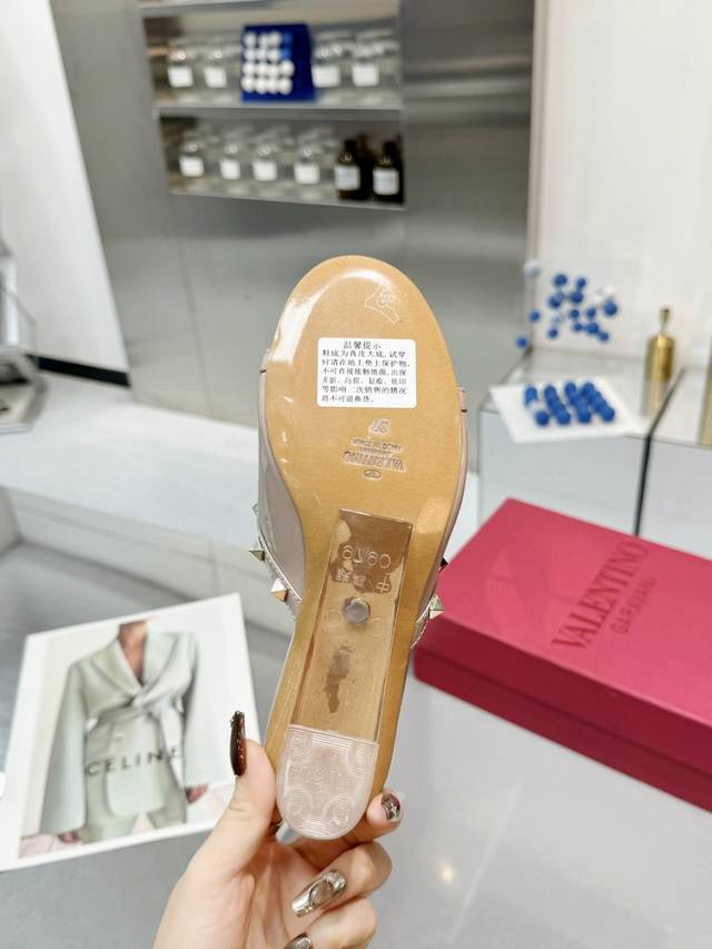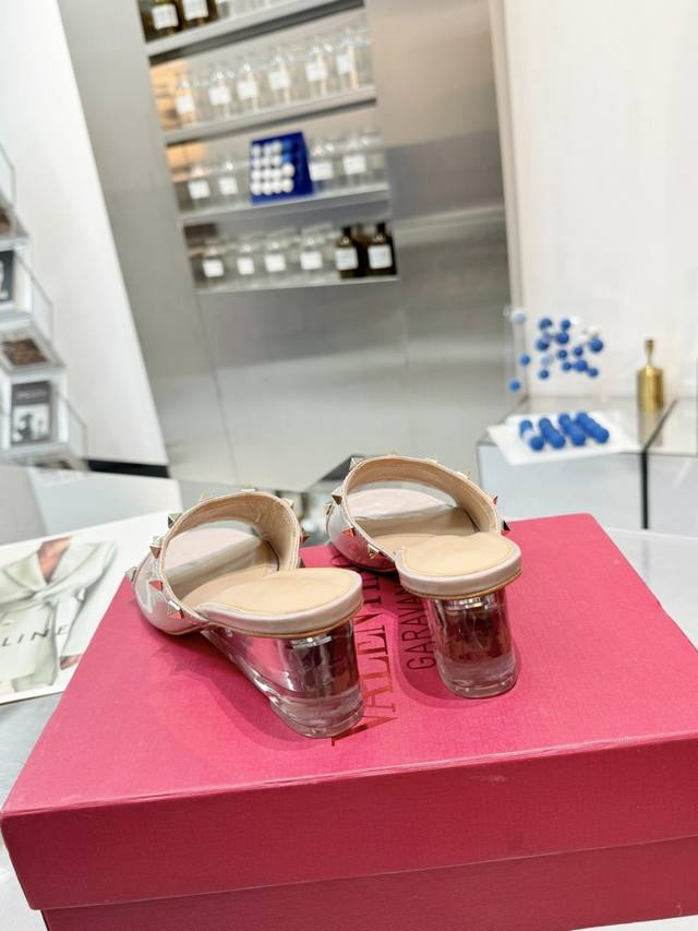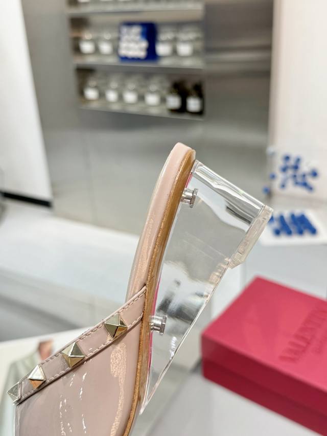 Factory P Rubber Sole 190 Leather Sole Vt Spring/Summer New Arrival, Absolutely Stunning!!! A Touch Of Sensuality Combined With The Cute Charm Of A Young Girl, The Classic Studded Design Never Goes Out Of Style. This Transparent Heel Version Is A Must-Have. Fabric: Premium