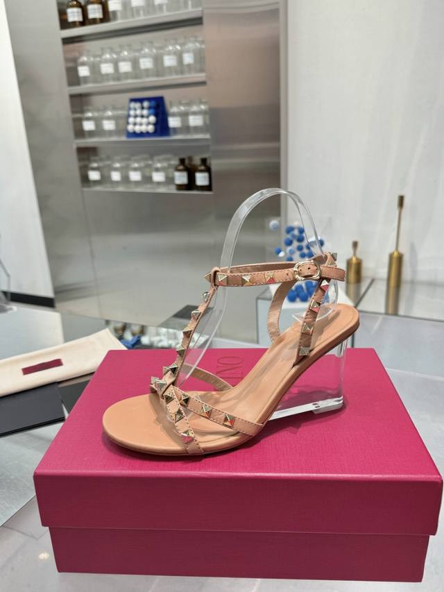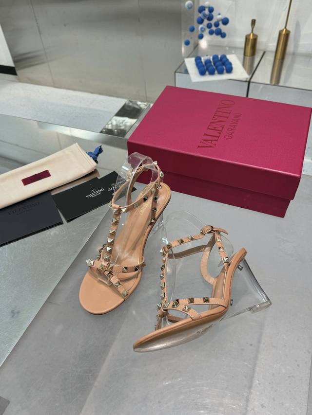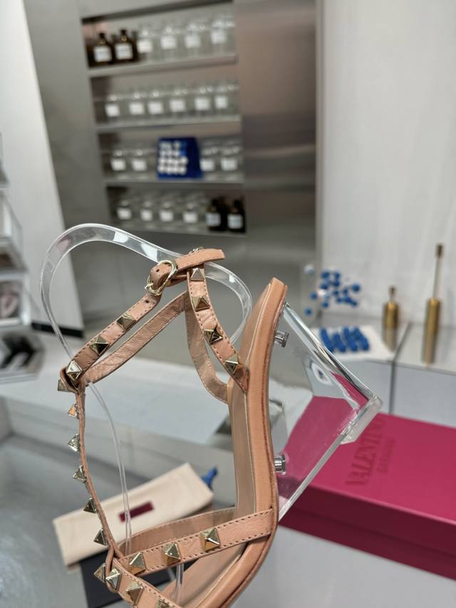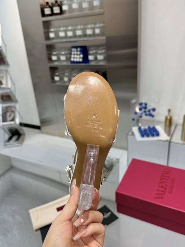 Factory P Rubber Sole 190 Leather Sole Vt Spring/Summer New Style, Absolutely Stunning!!! A Perfect Blend Of Subtle Sensuality And Girly Charm, The Classic Studded Design Never Goes Out Of Style. This Transparent Version With The Yuan Edition Is A Must-Have. Material: Imported