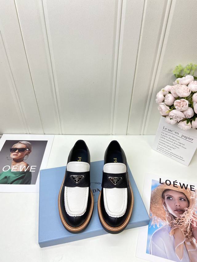 Factory p-batch prad 24S official website new loafers, boot-shaped with British retro design, classic and durable! Original molded last, ultimate 1:1 shape, imported high-end fabrics for exquisite texture!