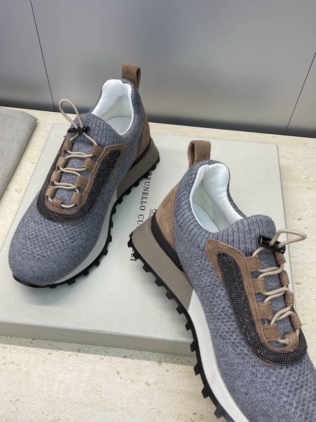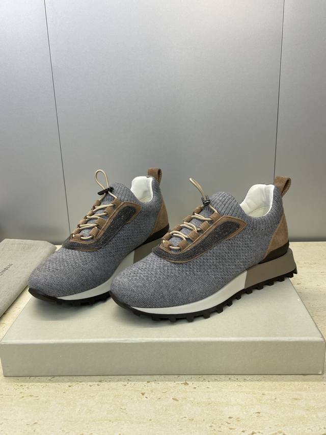 Factory Price DDD Brunello Cucinelli 2025 Autumn/Winter New Color Block Lace-up Women's Shoes Bc Thick Sole Round Toe Signature Beaded Casual Sports Running Shoes DDD Material: Imported environmentally friendly breathable wool yarn technical fabric for the upper + original custom beading + water-dyed sheepskin lining insole + original molded outsole DDD Sizes: 35-42 40, 41, 42 Custom orders are non-refundable DDD